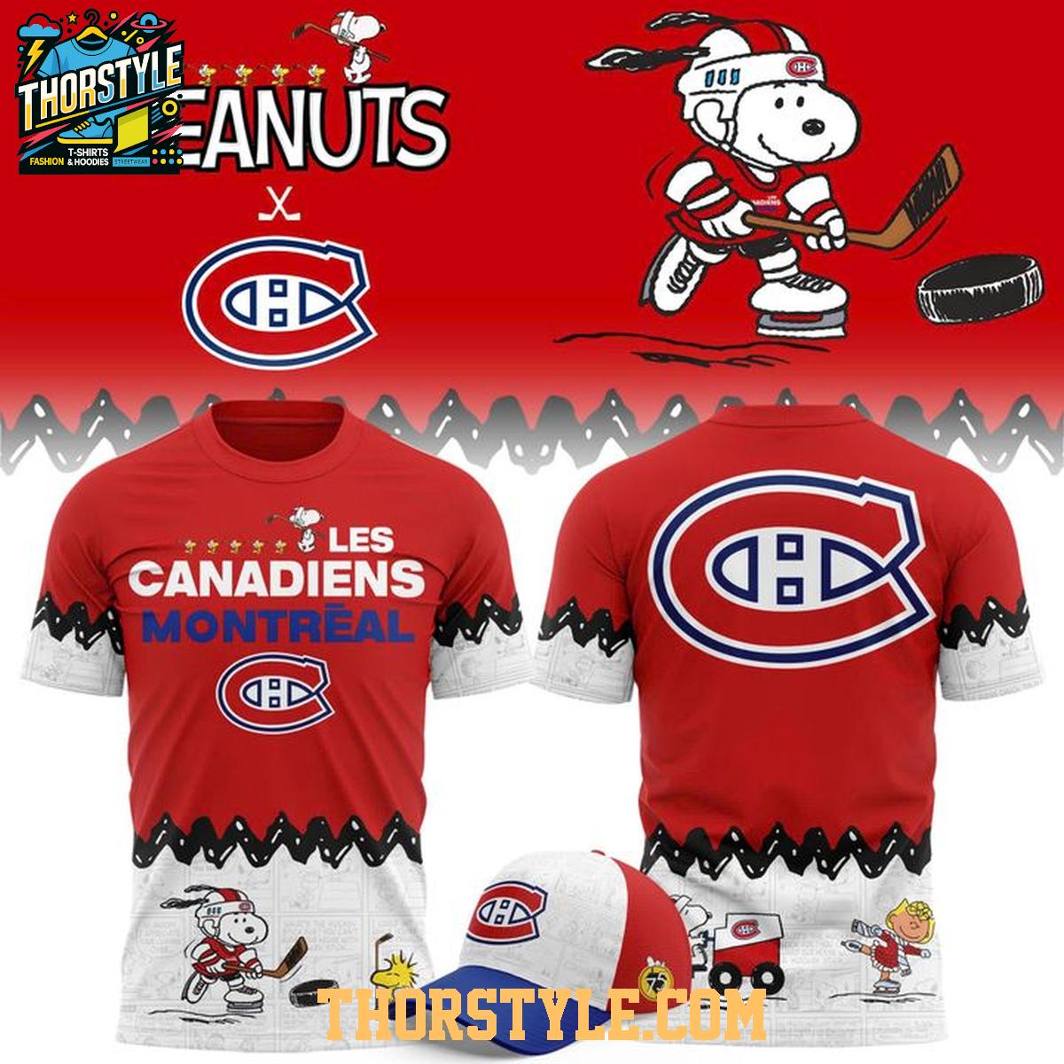 Montreal Canadiens Peanuts Night 2025-2026 Snoopy Hockey Hoodie T-Shirt