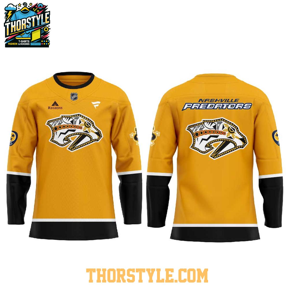 The design intricately integrates elements that pay homage to the API music community, making it a distinctive and meaningful piece for any dedicated Predators enthusiast. The personalized option allows you to add your name and number, transforming it into a truly unique representation of your fandom. Envision yourself wearing this eye-catching jersey to a game, a local music festival, or even during everyday activities – a guaranteed conversation starter and a powerful expression of your Nashville pride.