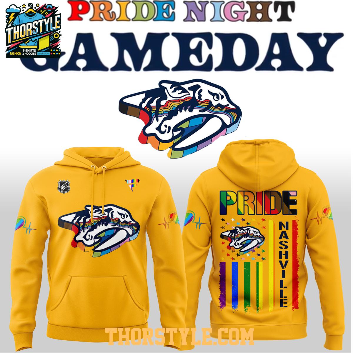 • Nashville Predators Celebrating Pride Night Gameday 2026 Vibe Hoodie Shirts