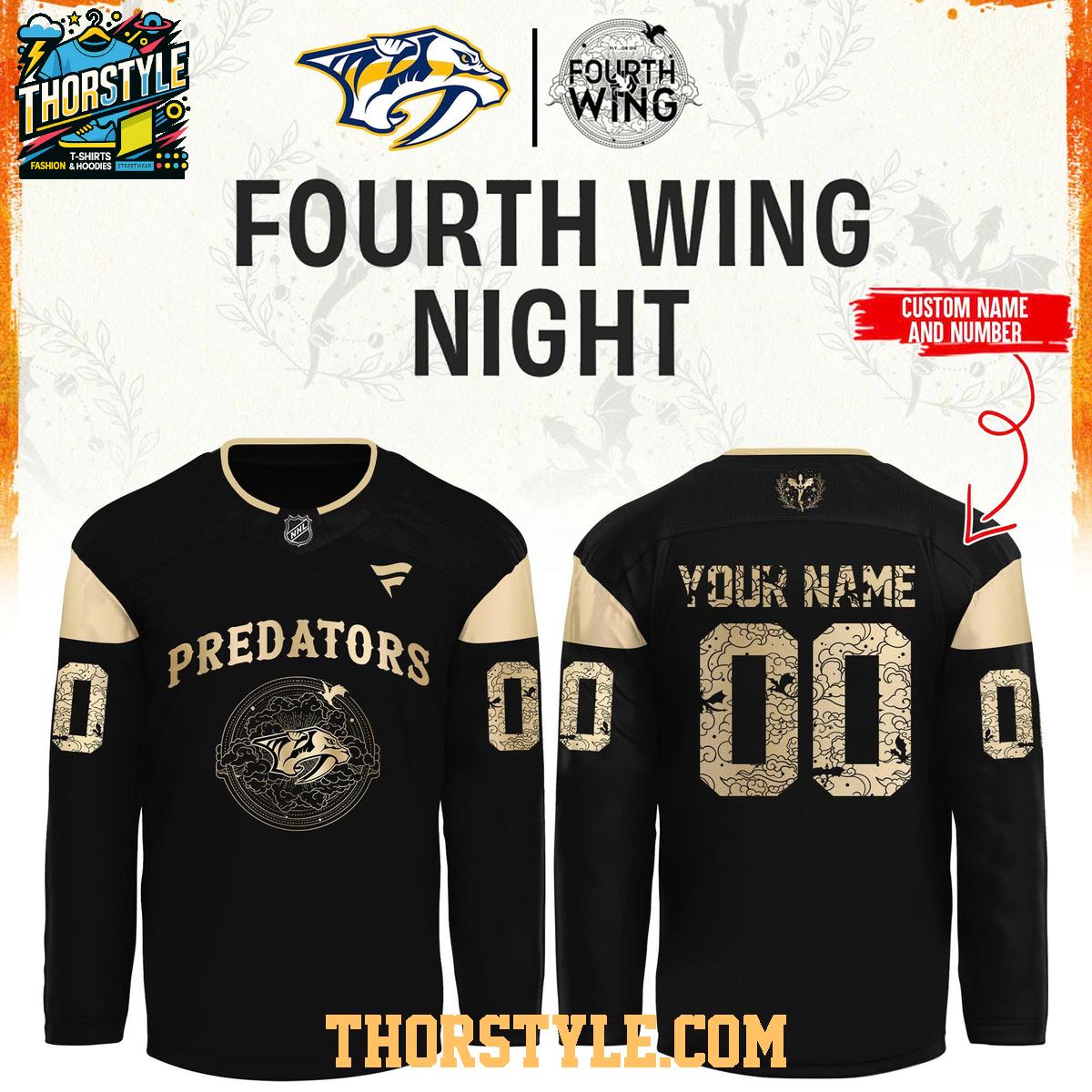 Celebrate Fourth Wings Night in style with the official Nashville Predators Fourth Wings Night 2025 Dark Personalized Hockey Jersey. This unique jersey allows you to showcase your unwavering support for the Predators while commemorating a special night in franchise history.