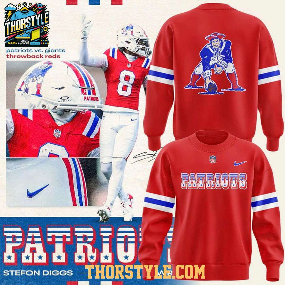 • New England Patriots 2025 Throwback Red Against NY Giants Hoodie T-Shirt