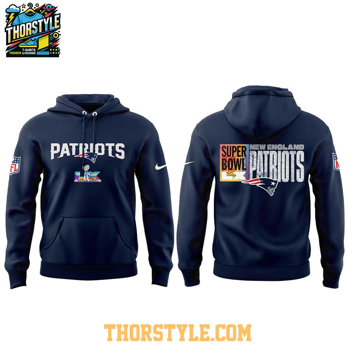 The design prominently features eye-catching Patriots graphics, including a distinctive Super Bowl 2026 emblem, showcasing your unwavering belief in the team's potential for future success. The integrated hoodie adds a touch of athletic flair, while the t-shirt cut maintains a casual and effortlessly wearable aesthetic. Constructed with durability in mind, this hoodie t-shirt is built to withstand regular wear and washing, ensuring that its vibrant colors and crisp graphics remain intact season after season.