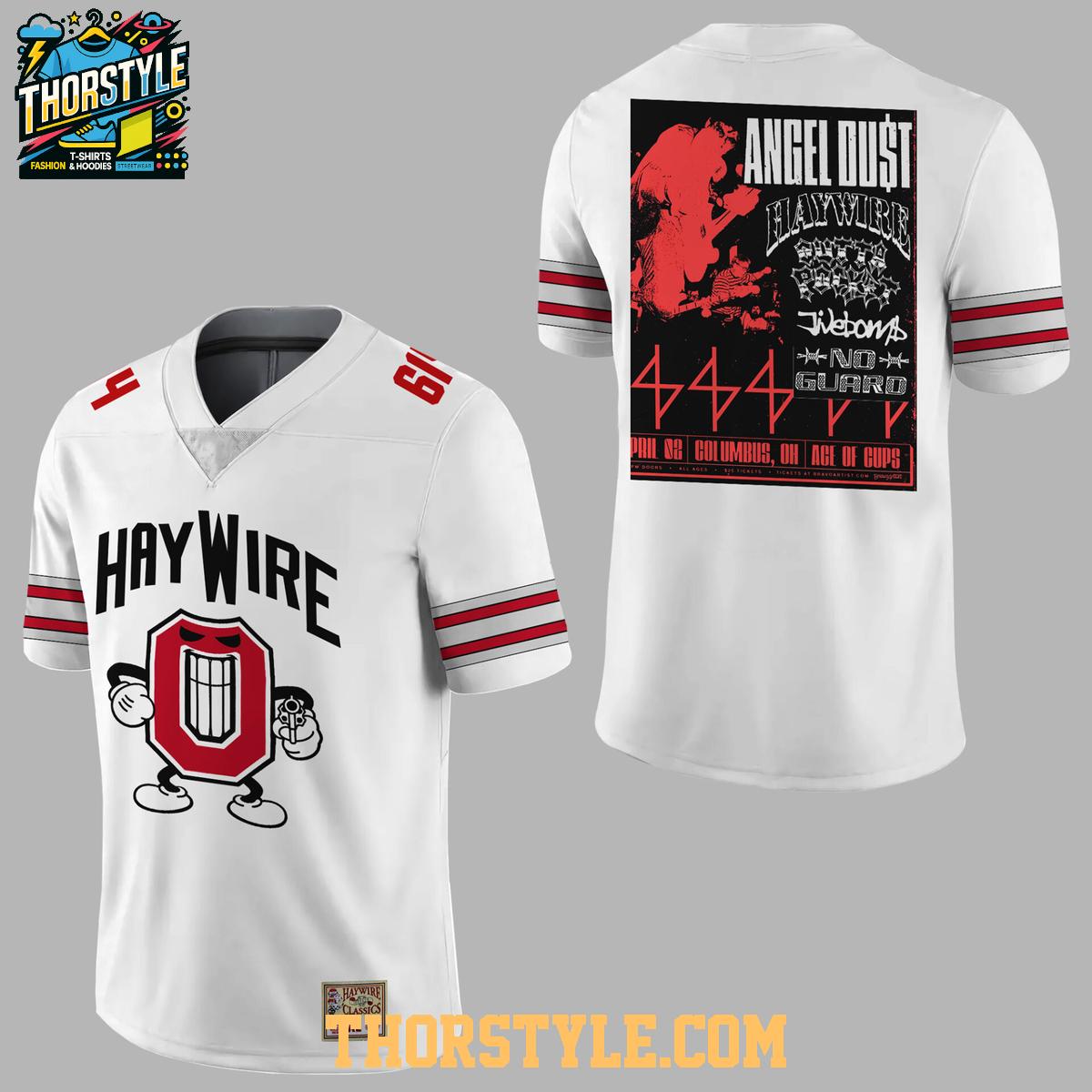 The jersey prominently features bold graphics, including the iconic "O" logo creatively reimagined with a distinctive Haywire twist, alongside custom details commemorating the highly anticipated 2026 season. The back of the jersey showcases a distinctive design inspired by the electrifying energy of the 614 area code and the indomitable spirit of Columbus. The meticulous attention to detail is clearly evident in the high-quality stitching and the vibrant, long-lasting colors, ensuring your jersey will stand the test of time.