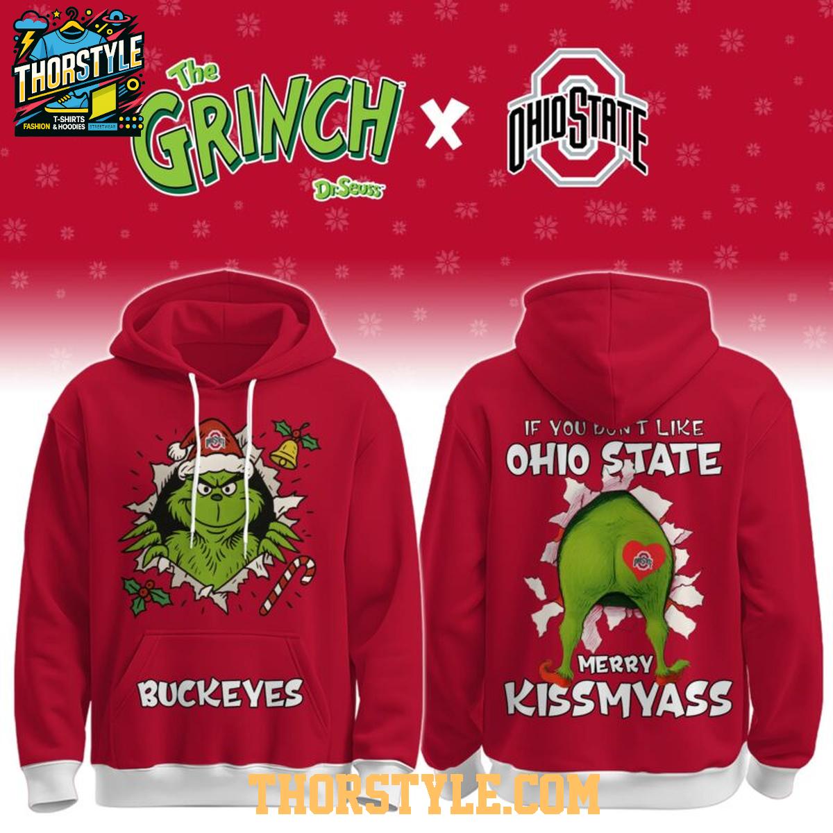 • Ohio State Buckeyes Grinch Naughty Kissmyass Christmas 2025 Hoodie T-Shirt