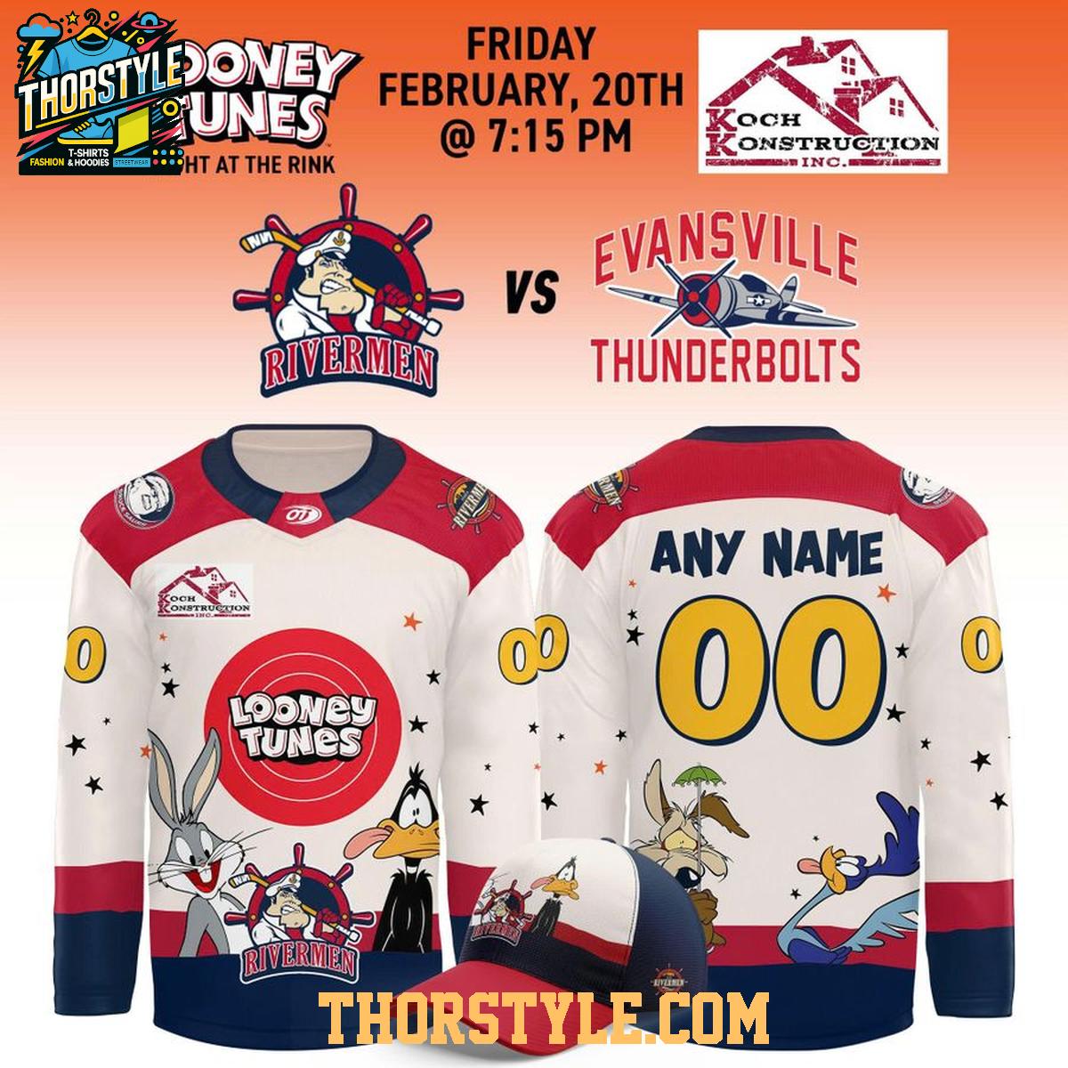 Peoria Rivermen Looney Tunes 2026 Night Personalized Hockey Jersey,,