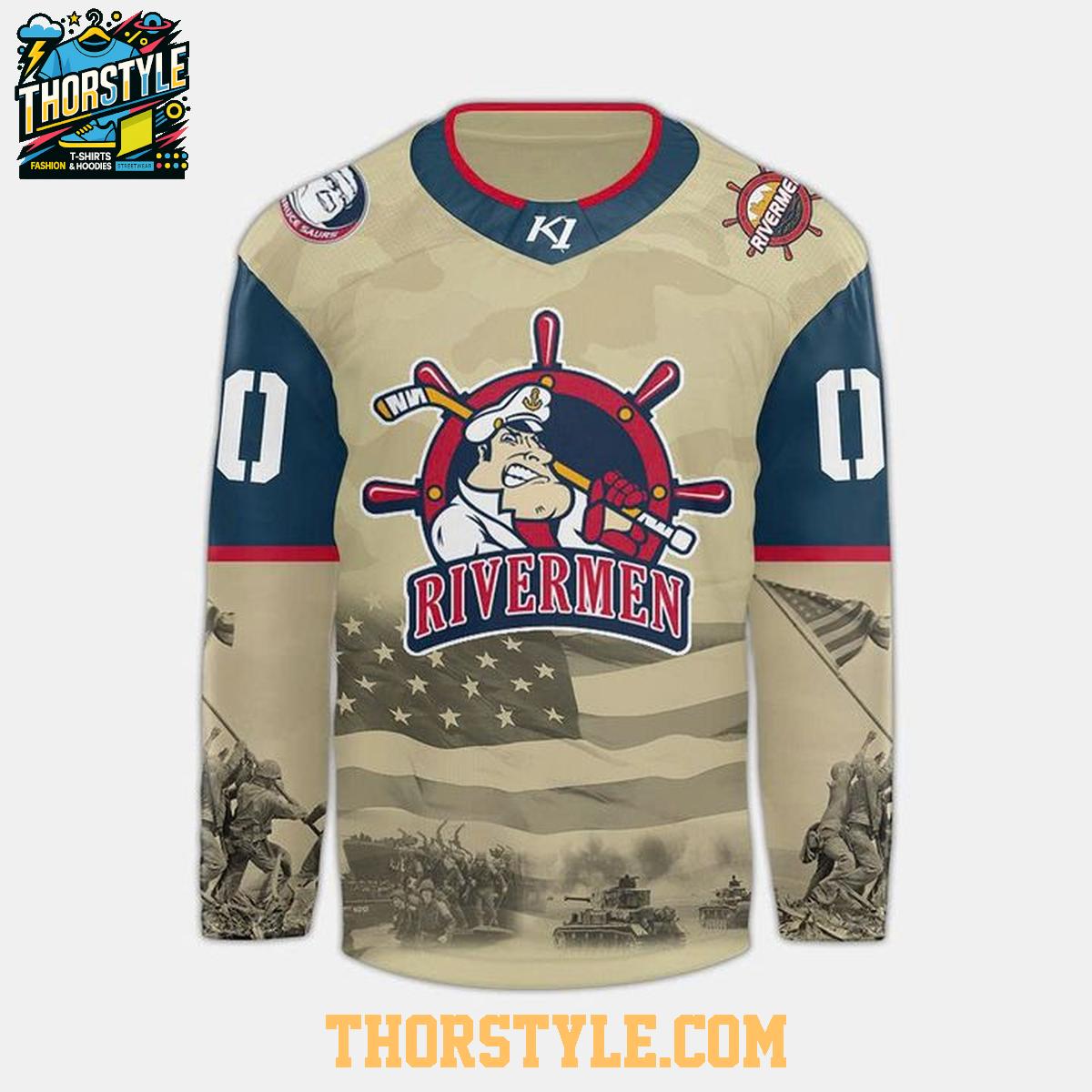 Show your support for the Peoria Rivermen and honor our military heroes with the limited-edition Peoria Rivermen Military Night 2025-2026 Personalized Hockey Jersey. This unique jersey is a tribute to both the team and the brave men and women who serve. Wear it with pride at the game or as a statement piece in your everyday wardrobe.