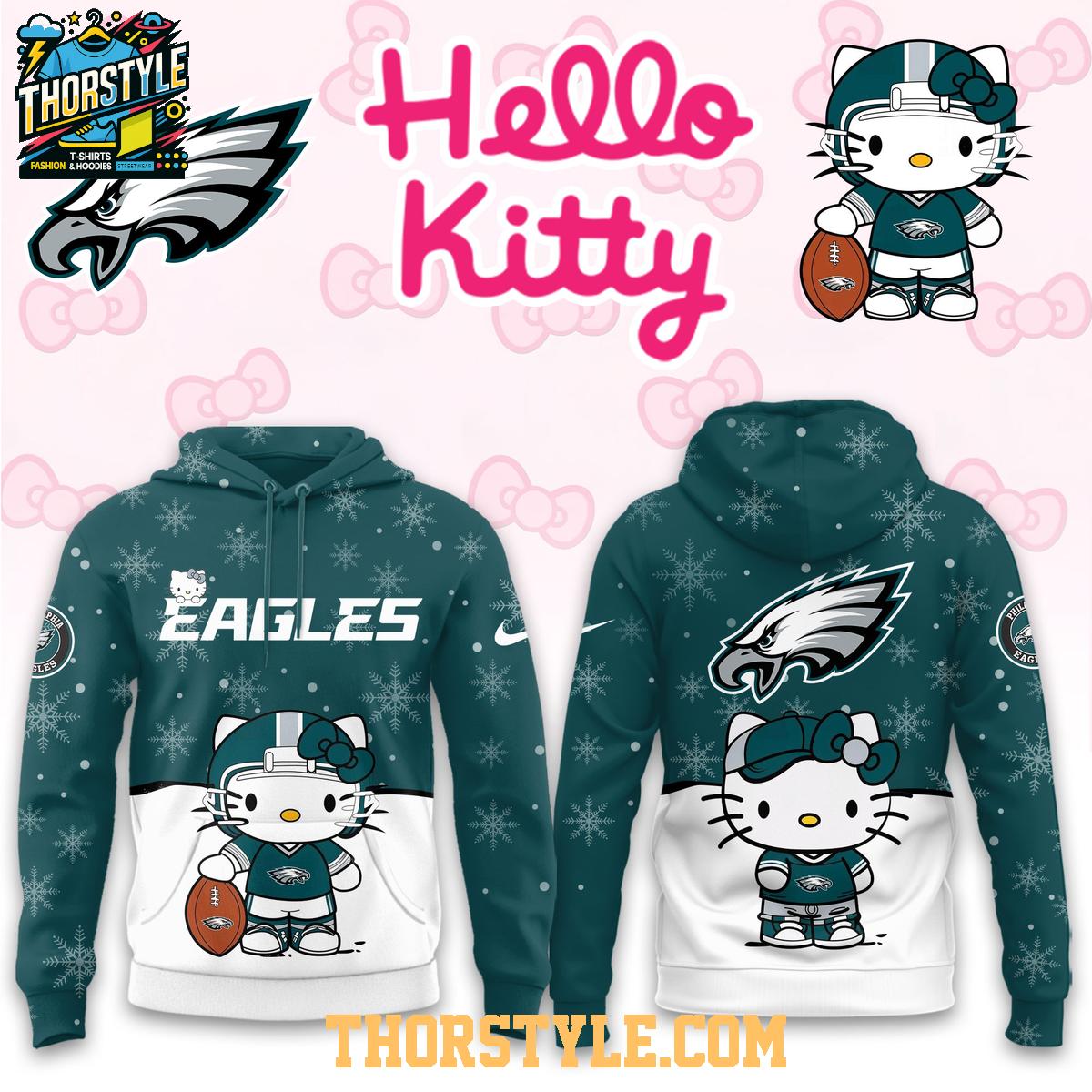 Gear up for the 2025 Christmas Game Day with the limited-edition Philadelphia Eagles Hello Kitty Hoodie T-Shirt, a unique and festive apparel item that seamlessly blends your passion for the Eagles with the iconic appeal of Hello Kitty. This exclusive mashup is designed to celebrate both your team loyalty and your appreciation for kawaii culture, making it the perfect addition to your holiday wardrobe.