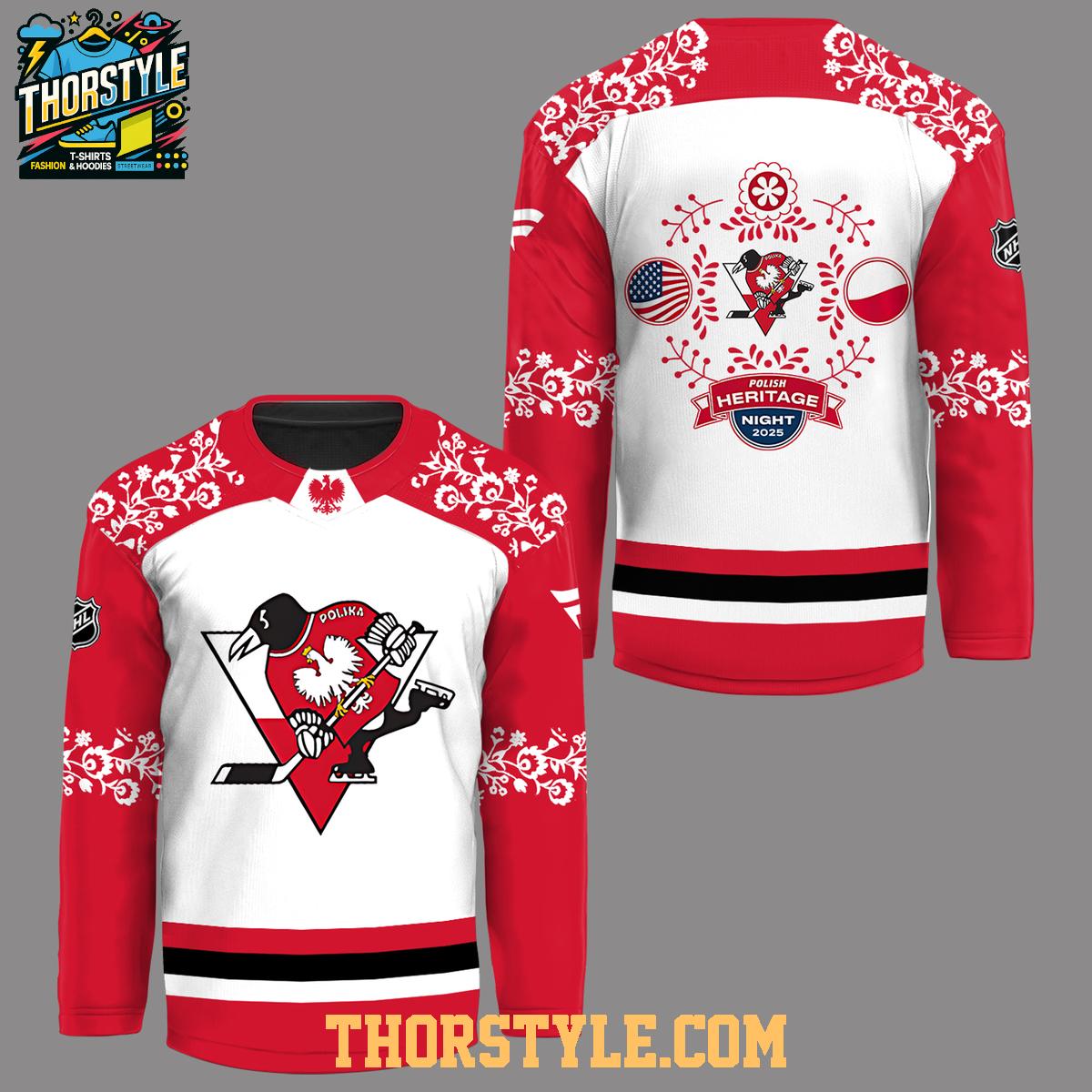 Whether you’re a lifelong Penguins fan, a proud Polish-American, or a collector of unique sports memorabilia, this jersey is a must-have for 2025.