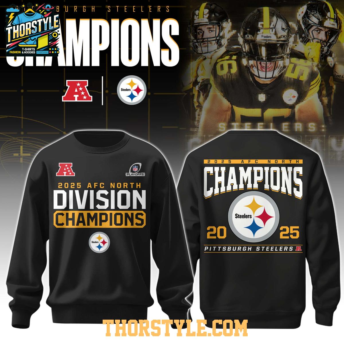 Pittsburgh Steelers AFC North Champions 2025 Cheers Hoodie T-Shirt