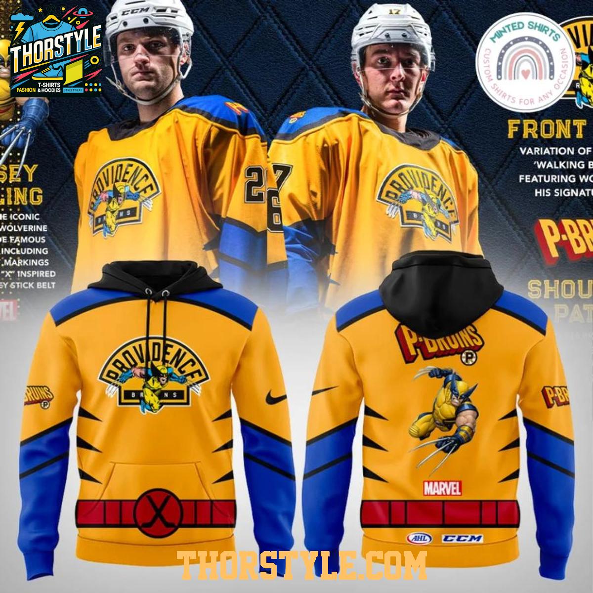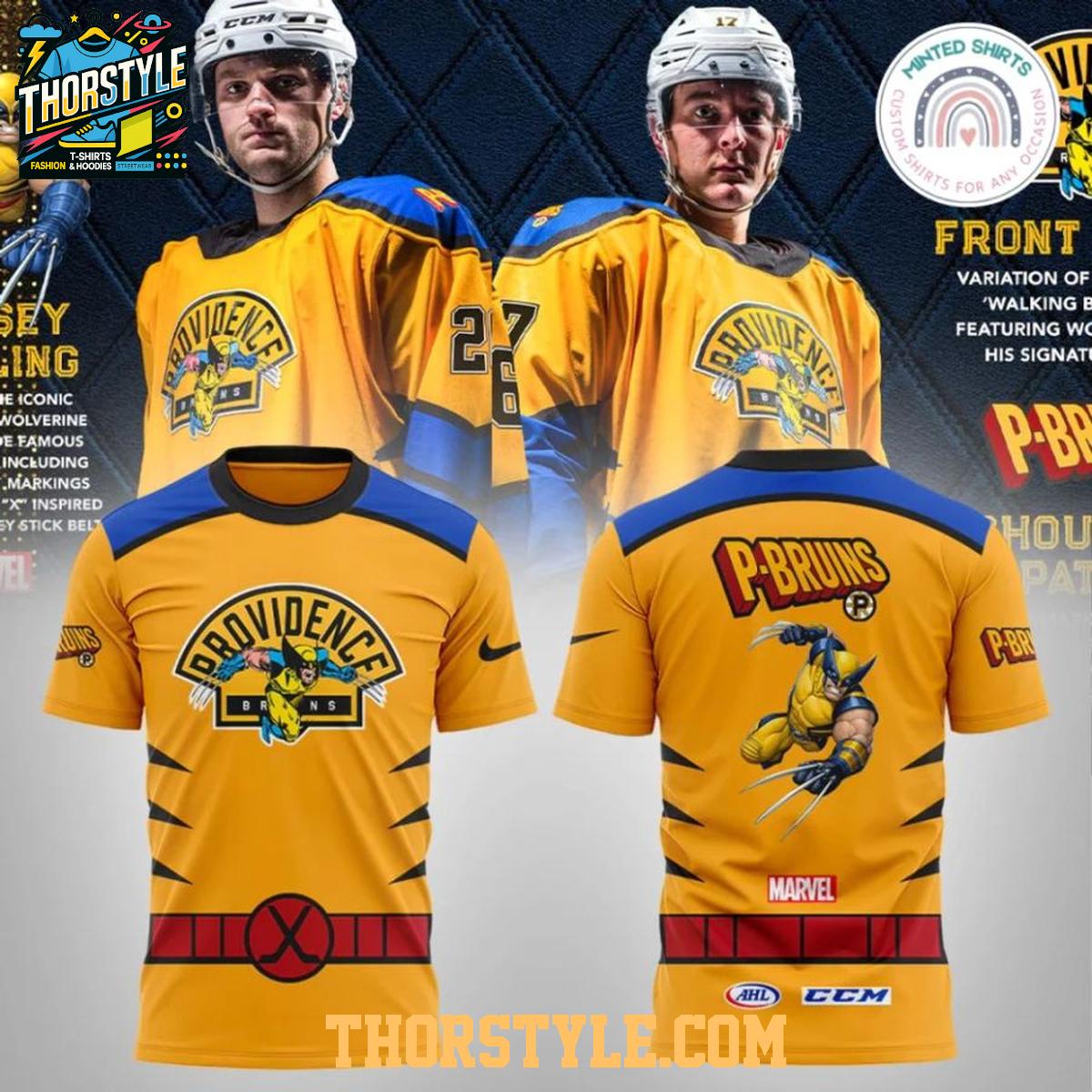 Providence Bruins Marvel Wolverine 2026 Super Hero Night Hoodie T-Shirt