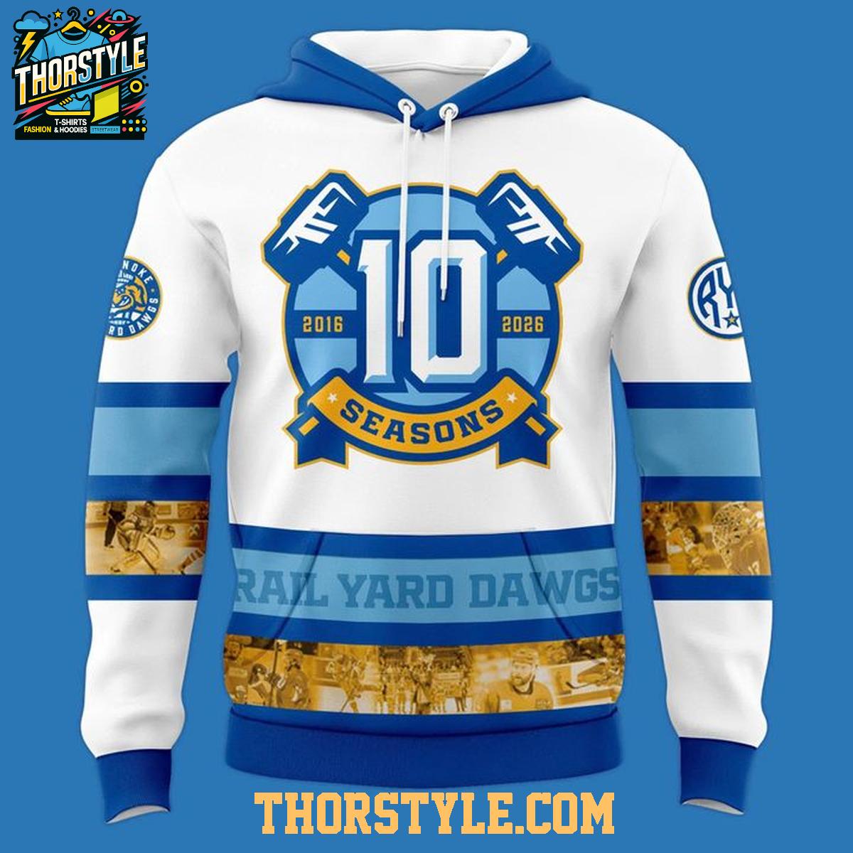 ,Roanoke Rail Yard Dawgs 10 Year Celebrate Jersey Auction 2026 Hoodie,Roanoke Rail Yard Dawgs 10 Year Celebrate Jersey Auction 2026 Hoodie