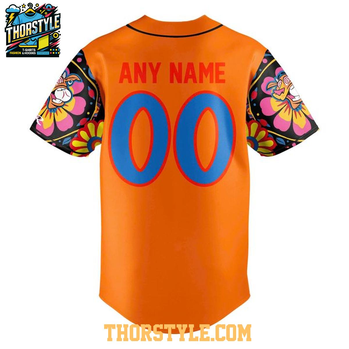 Rocket City Trash Pandas Rawlings Orange Lunaticos 2026 Baseball Jersey