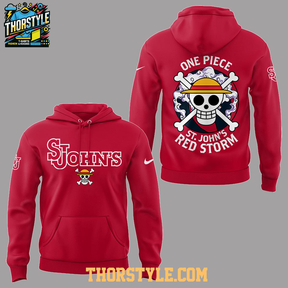 Whether you're heading to class, meeting up with friends, or passionately cheering on the Johnnies from the stands, this hoodie t-shirt is a versatile and stylish choice. Pair it effortlessly with jeans or shorts for a relaxed and casual look, or layer it under a jacket for added warmth and style on cooler days. Beyond its functional appeal, this hoodie t-shirt serves as a fantastic conversation starter, connecting you with fellow fans who share your enthusiasm for both the Saint John's Johnnies and the captivating world of One Piece. The unique design, comfortable fit, and durable construction make it an essential addition to any fan's wardrobe.