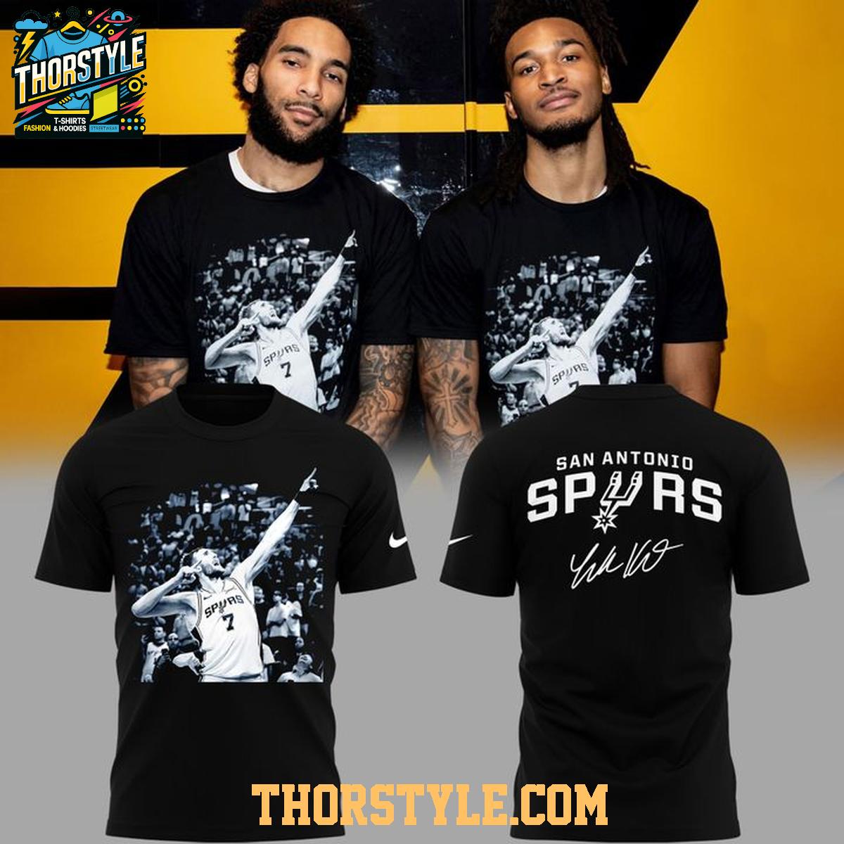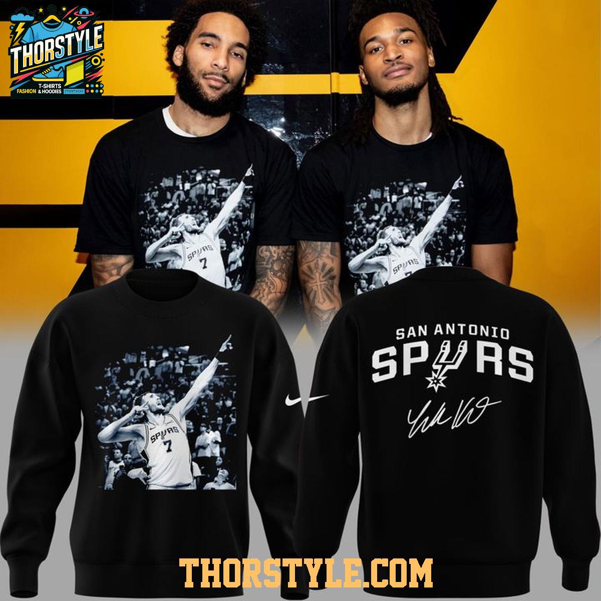 Celebrate the potential future dynasty of the San Antonio Spurs with the limited-edition San Antonio Spurs Champions Night Luke Kornet 2025-2026 NBA Hoodie T-Shirt. This unique piece of fan apparel seamlessly blends the comfort of a classic hoodie with the casual style of a t-shirt, offering a versatile and stylish way to showcase your unwavering support for the team. It's an ideal addition to any dedicated Spurs supporter's wardrobe.