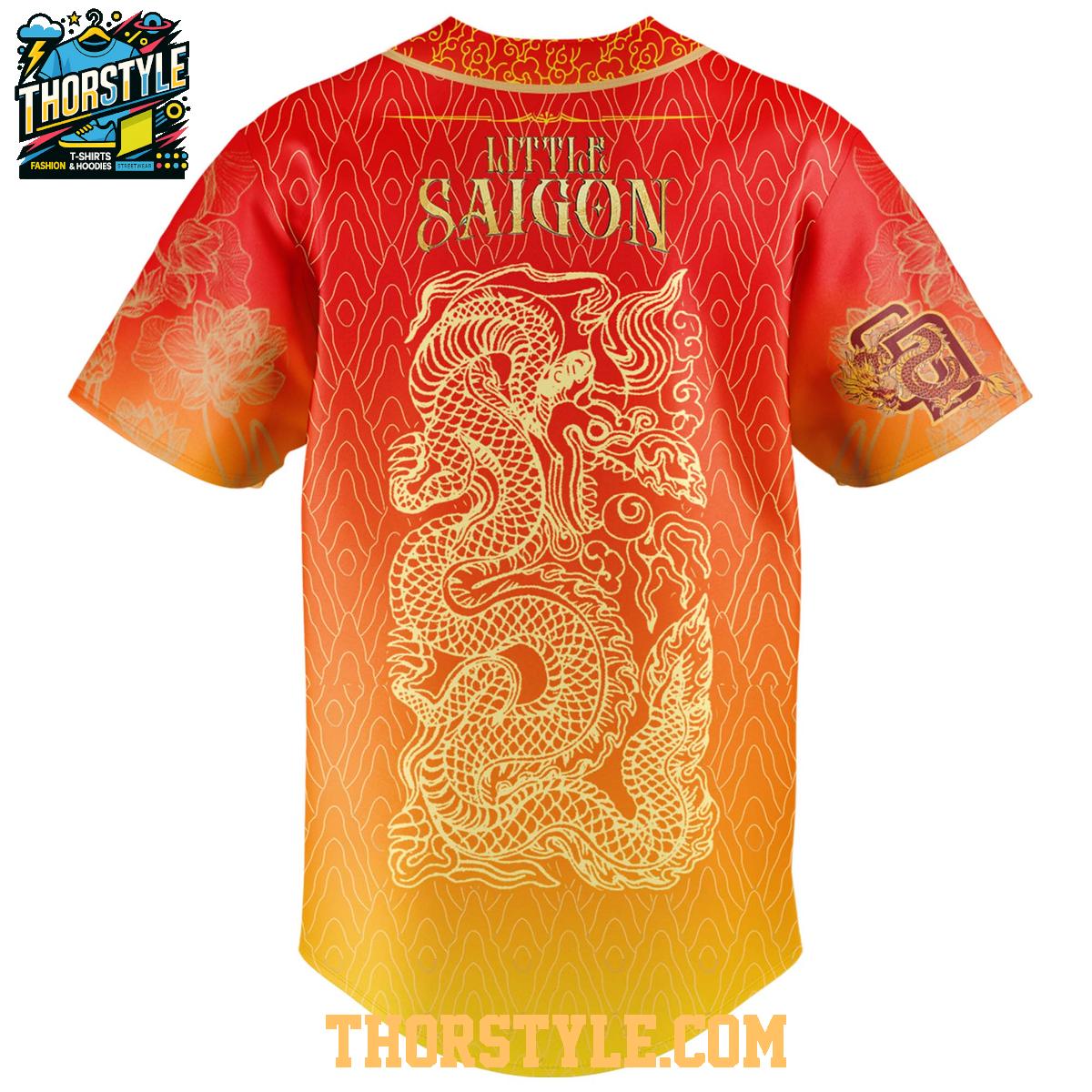 Imagine sporting this jersey at a Padres game, cheering on your favorite players while representing the Little Saigon community. Alternatively, wear it to a local cultural festival or community event to showcase your heritage. The jersey's unique design serves as a conversation starter, offering an opportunity to share the story behind the event and the vibrant Vietnamese culture it celebrates. To maintain the jersey's vibrant colors and intricate details, machine wash it cold with like colors and tumble dry on low.