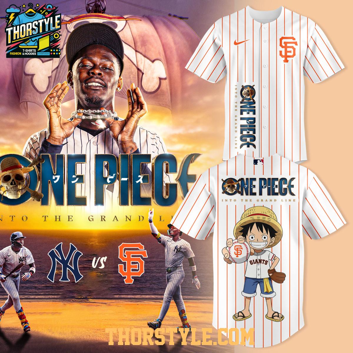 The jersey prominently features the iconic San Francisco Giants logo alongside imagery inspired by One Piece. The vibrant colors and detailed graphics capture the energy of both worlds. Made from breathable, lightweight material, this jersey is designed for comfort whether you're cheering from the stands or displaying it as part of your collection. The high-quality construction ensures durability, allowing you to wear it proudly for seasons to come.