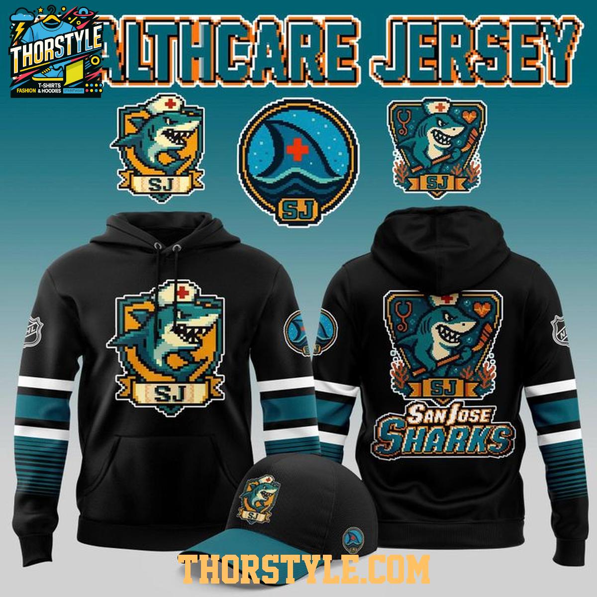 Effortlessly pair this versatile hoodie t-shirt with your favorite jeans or leggings for a casual, everyday ensemble. Layer it comfortably under a jacket during cooler weather, or wear it independently during warmer months. Its versatile design seamlessly integrates into your existing wardrobe, allowing you to express your team pride and healthcare appreciation in any setting. To maintain the pristine appearance of your San Jose Sharks hoodie t-shirt, machine wash it inside out in cold water and tumble dry on low. This simple care routine will effectively preserve the colors and prevent fading, ensuring its lasting appeal.