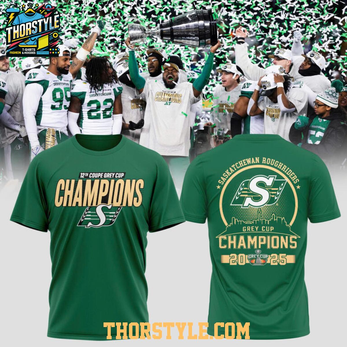 • Saskatchewan Roughriders 5X Grey Cup 2025 Champions Hoodie T-Shirt