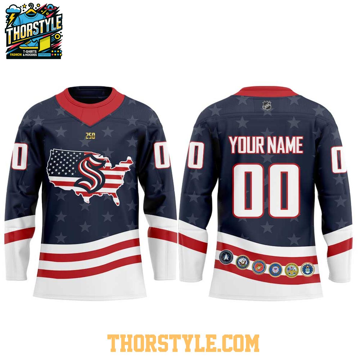 ,Seattle Kraken Military Appreciation 2026 Night Freedom250 Hockey Jersey