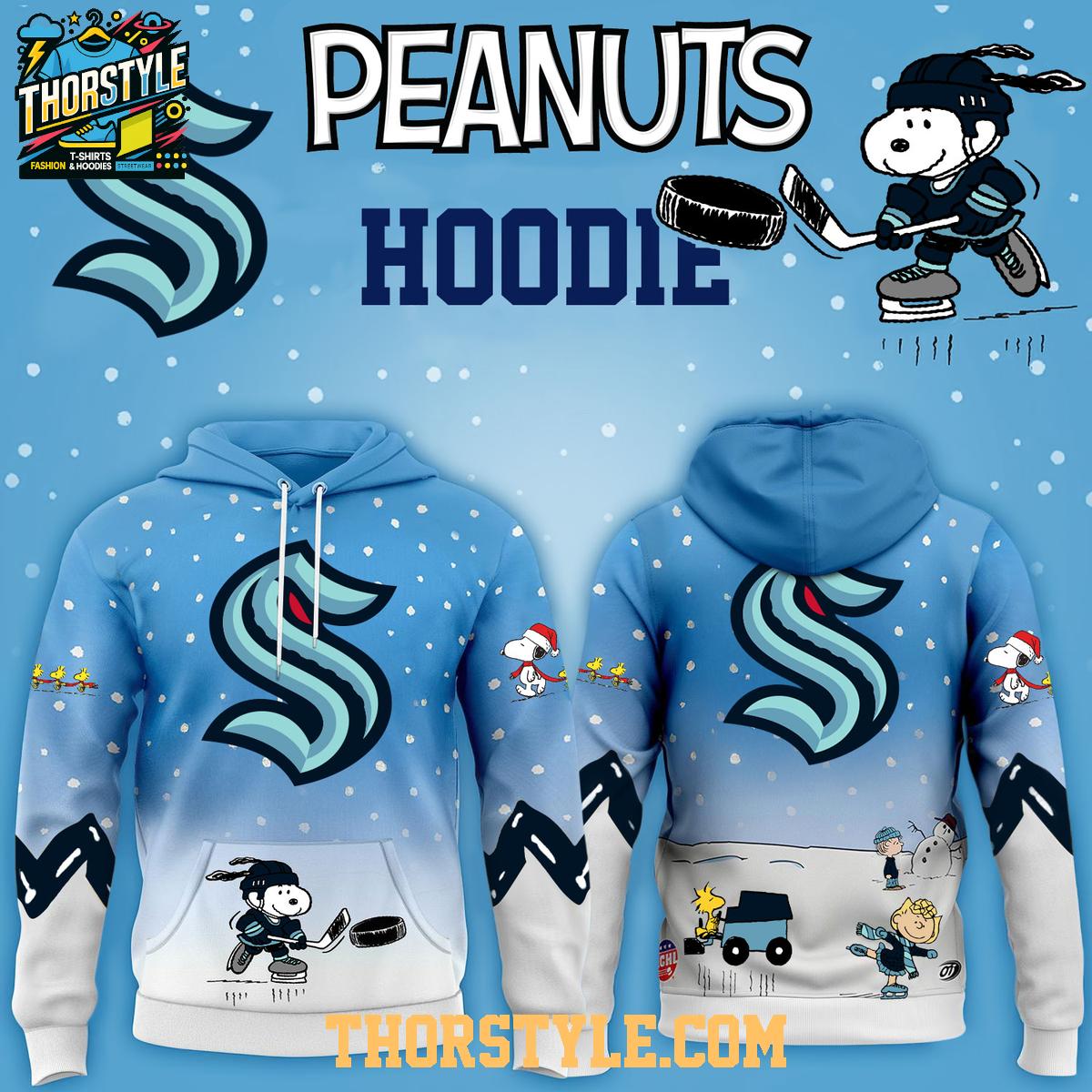 Imagine wearing this Seattle Kraken Peanuts hoodie t-shirt to a casual holiday gathering with friends, or even to a winter sporting event. Pair it with jeans and sneakers for a relaxed look, or dress it up with chinos and boots for a more polished ensemble. It can also be a fantastic conversation starter, allowing you to share your love for the Kraken and the Peanuts gang with fellow fans. For care, it is recommended to machine wash cold and tumble dry low to preserve the quality of the print and fabric.