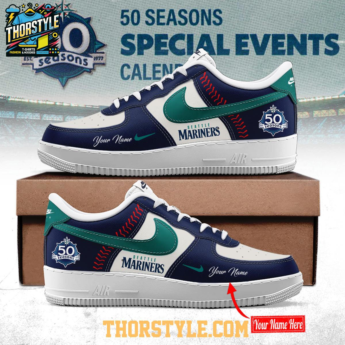• Seattle Mariners 50 Seasons 1977-2026 Personalized Air Force 1 Shoes