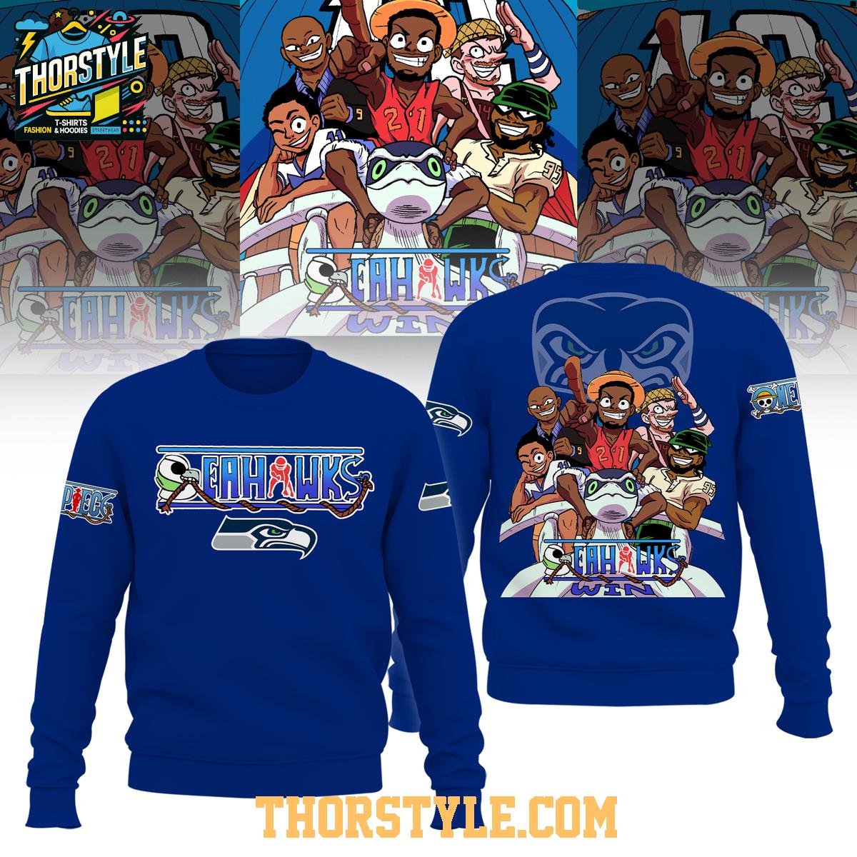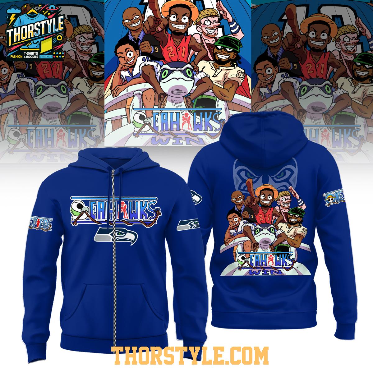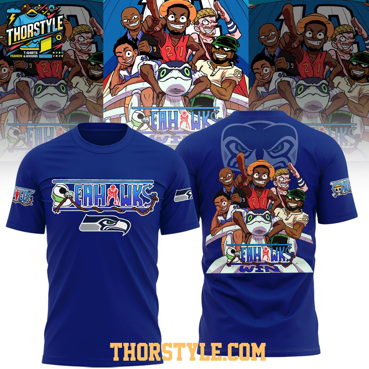 Gear up for game day and beyond with the unique Seattle Seahawks One Piece 2025 Straw Hat Poster Hoodie T-Shirt. This eye-catching apparel blends the iconic imagery of the Seahawks with the adventurous spirit of the beloved One Piece anime, creating a must-have item for fans of both. Whether you're cheering from the stands or relaxing at home, this hoodie tee lets you showcase your passions in style.