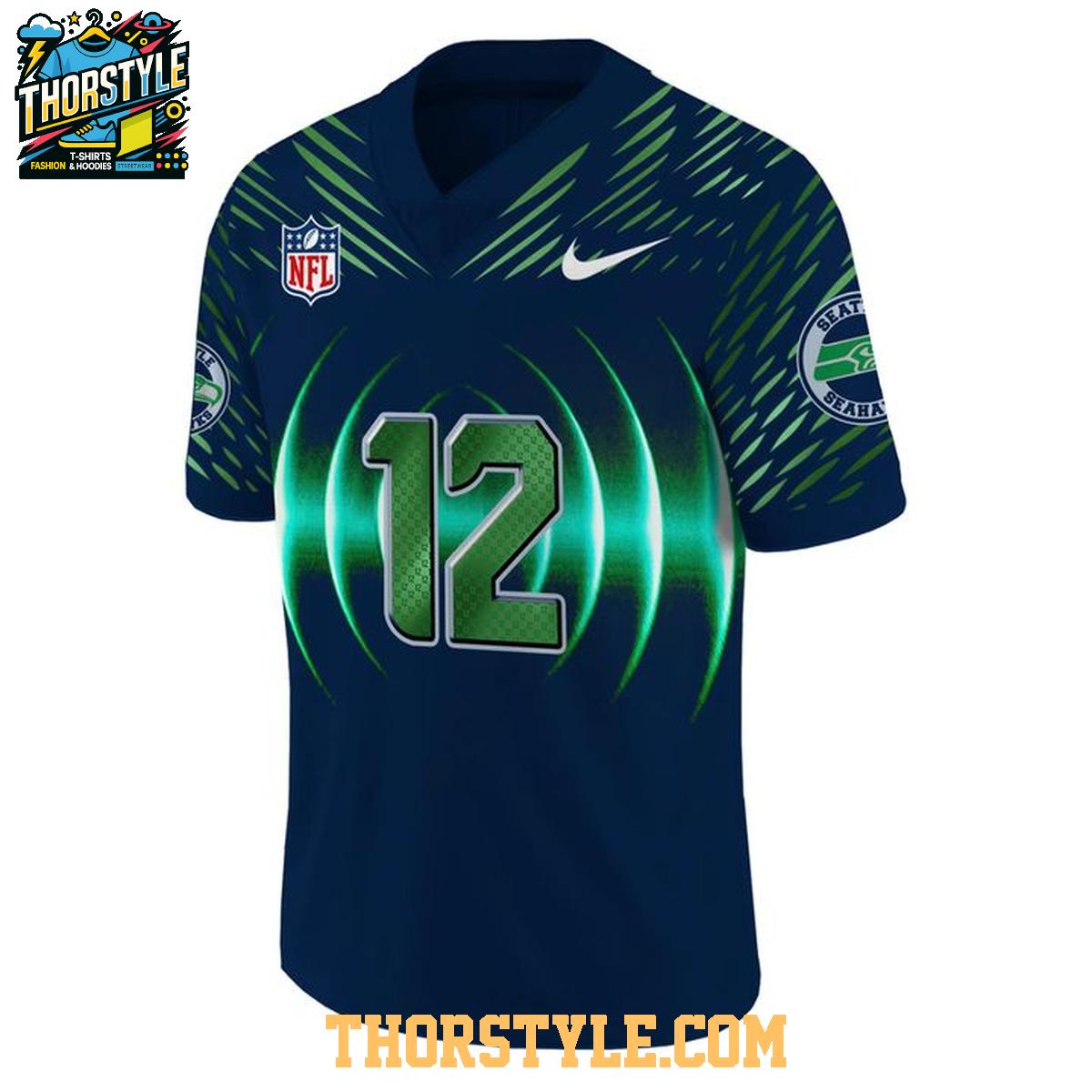 Crafted from breathable, performance-focused materials, this jersey prioritizes comfort in any setting. Whether you're cheering from the stands, tailgating with fellow fans, or watching the game at home, the lightweight fabric ensures optimal comfort. Vibrant colors and sharp graphics vividly display your Seahawks pride, creating a bold and stylish look that captures the team's energy.