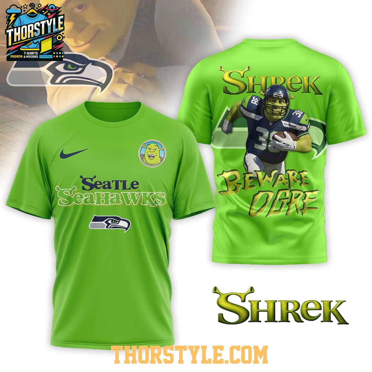 Seattle Seahawks Shrek 2025 NFL Beware Ogre Christmas Hoodie T-Shirt
