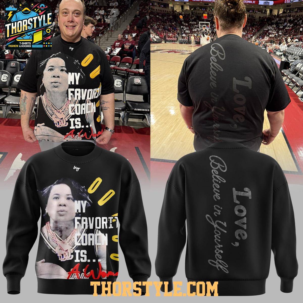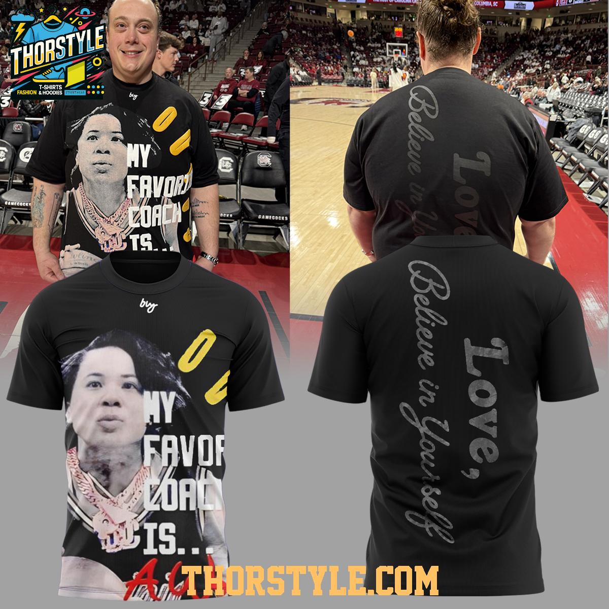 The design boldly proclaims your support for the South Carolina Gamecocks, featuring a motivational message of "Love, Believe in Yourself" prominently displayed on the back, inspiring confidence and team spirit. The front showcases a unique and eye-catching graphic that further exemplifies your Gamecocks pride. The high-quality print is exceptionally durable and resistant to fading, ensuring that your team colors remain vibrant and bold, wash after wash.