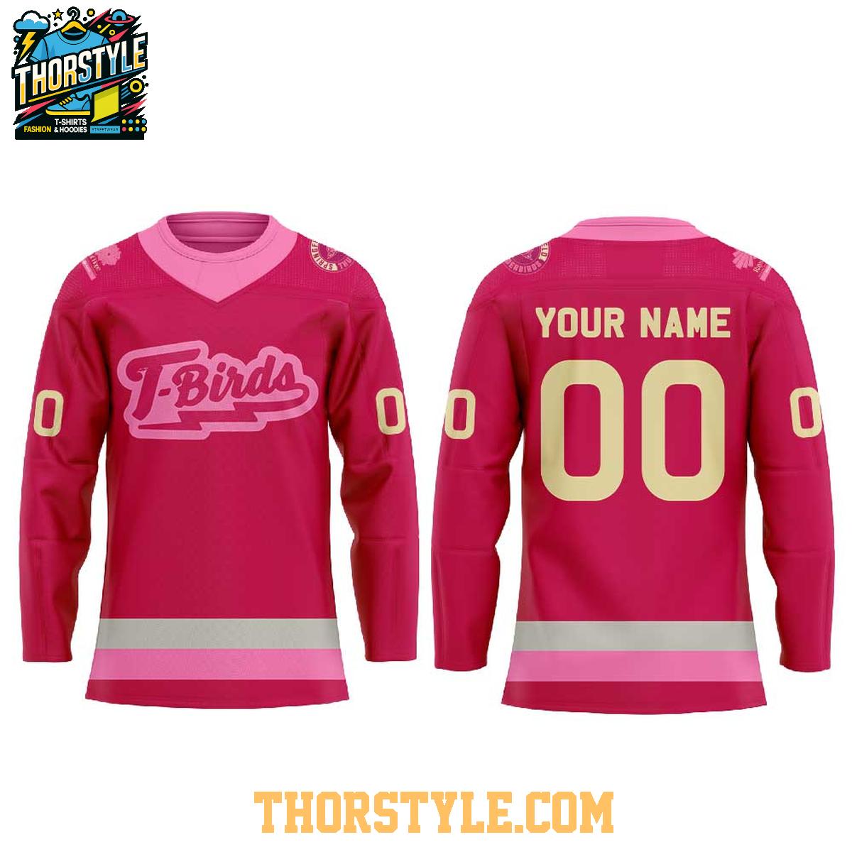 The jersey prominently displays the iconic "T-Birds" logo on the chest, rendered in eye-catching shades of pink that incorporate elements of the Pink In The Rink theme. You can personalize the back with your name and preferred number, creating a truly unique piece that reflects your individual connection to the team. This customization transforms the jersey into a cherished keepsake.