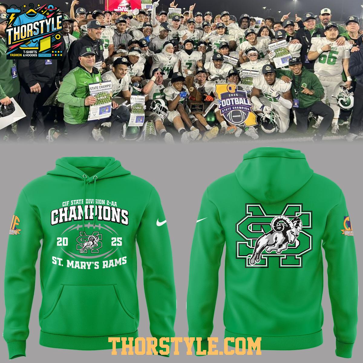 St. Mary’s Rams 2025 CIF State Division 2-AA Champions Football Hoodie