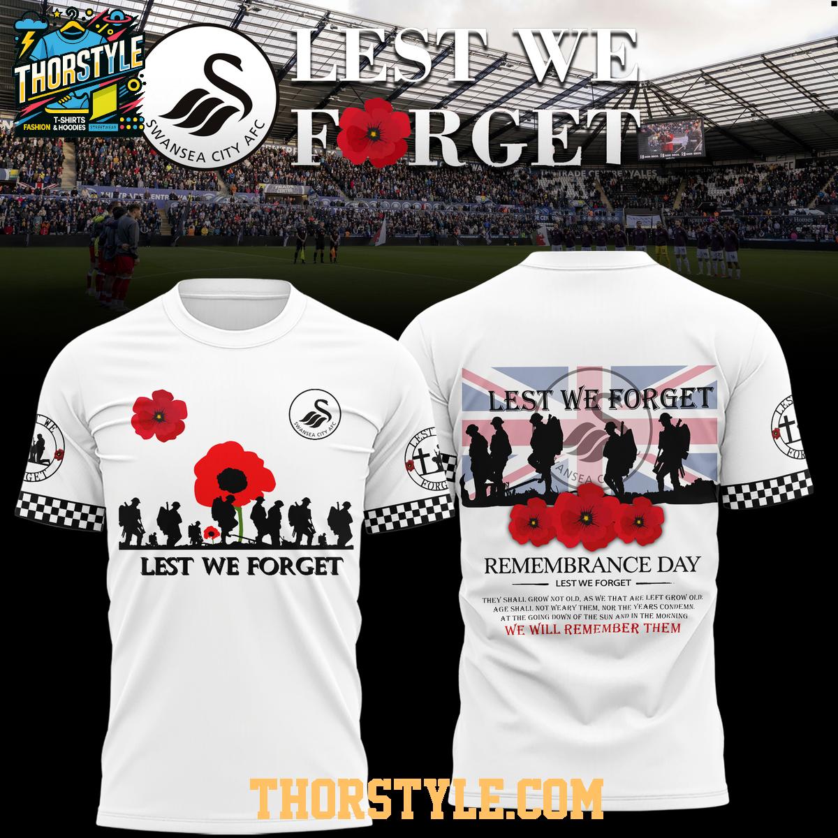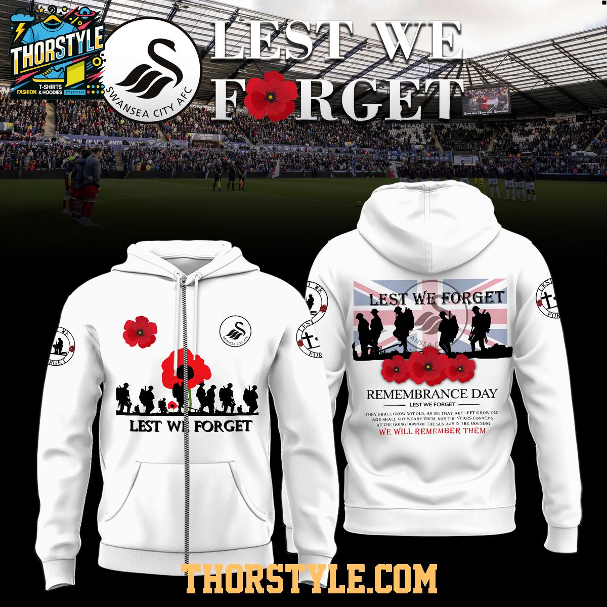 ,Swansea City FC 2025 Remembrance Day Lest We Forget Hoodie T-Shirt,Swansea City FC 2025 Remembrance Day Lest We Forget Hoodie T-Shirt