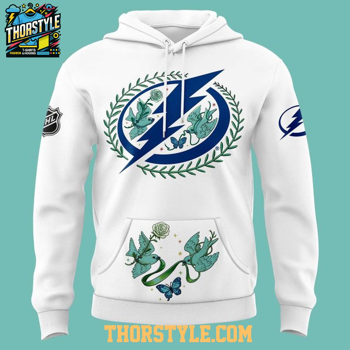 Pair this hoodie with jeans and sneakers for a casual look, or layer it under a jacket for extra warmth during colder months. To keep your Tampa Bay Lightning Hockey Talks hoodie looking its best, machine wash it inside out with cold water and tumble dry on low. Avoid using bleach or ironing directly on the printed design. This hoodie is a great way to show your team spirit while supporting an important cause.