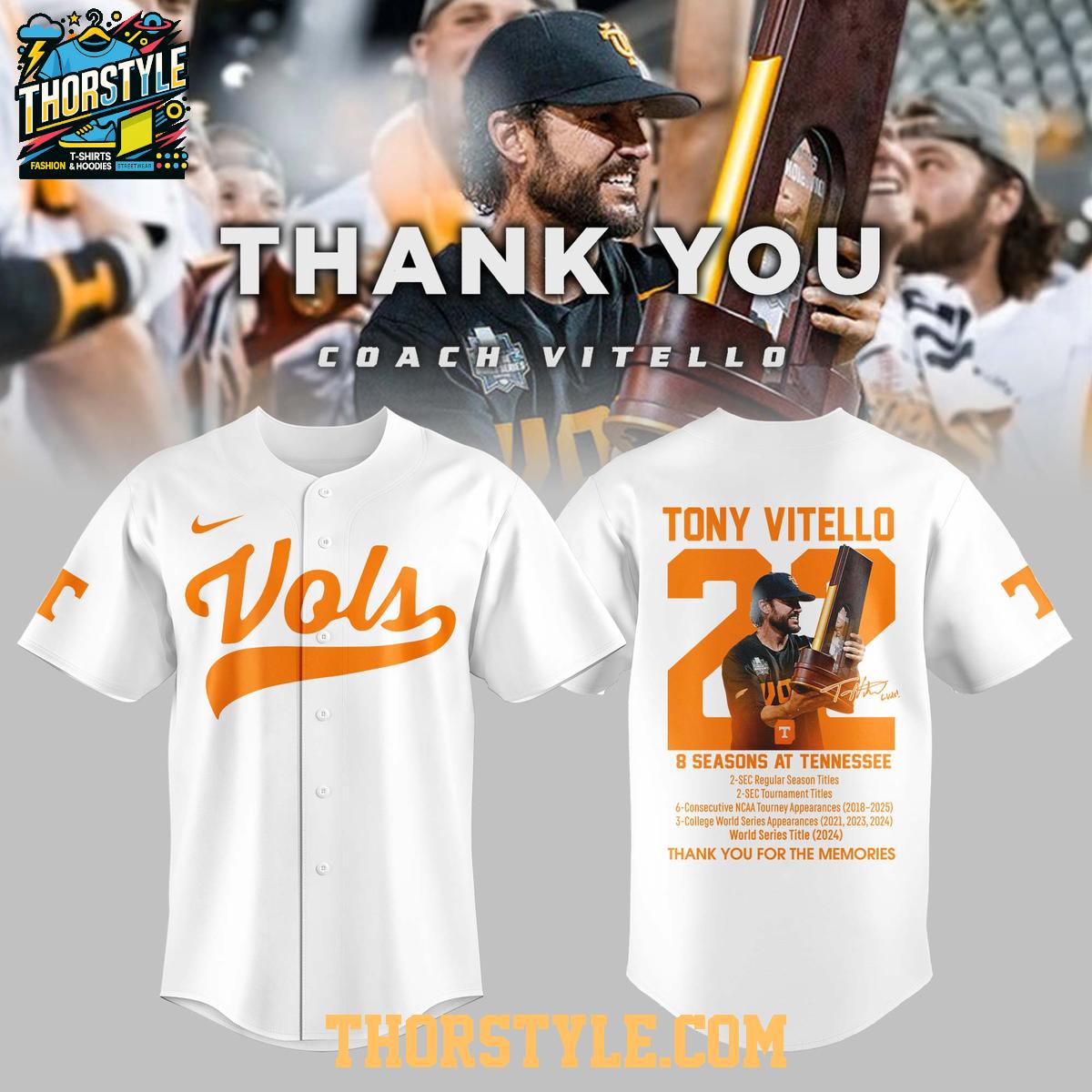 Tennessee Volunteers Coach Tony Vitello Thank You 2018-2025 Baseball Jersey,