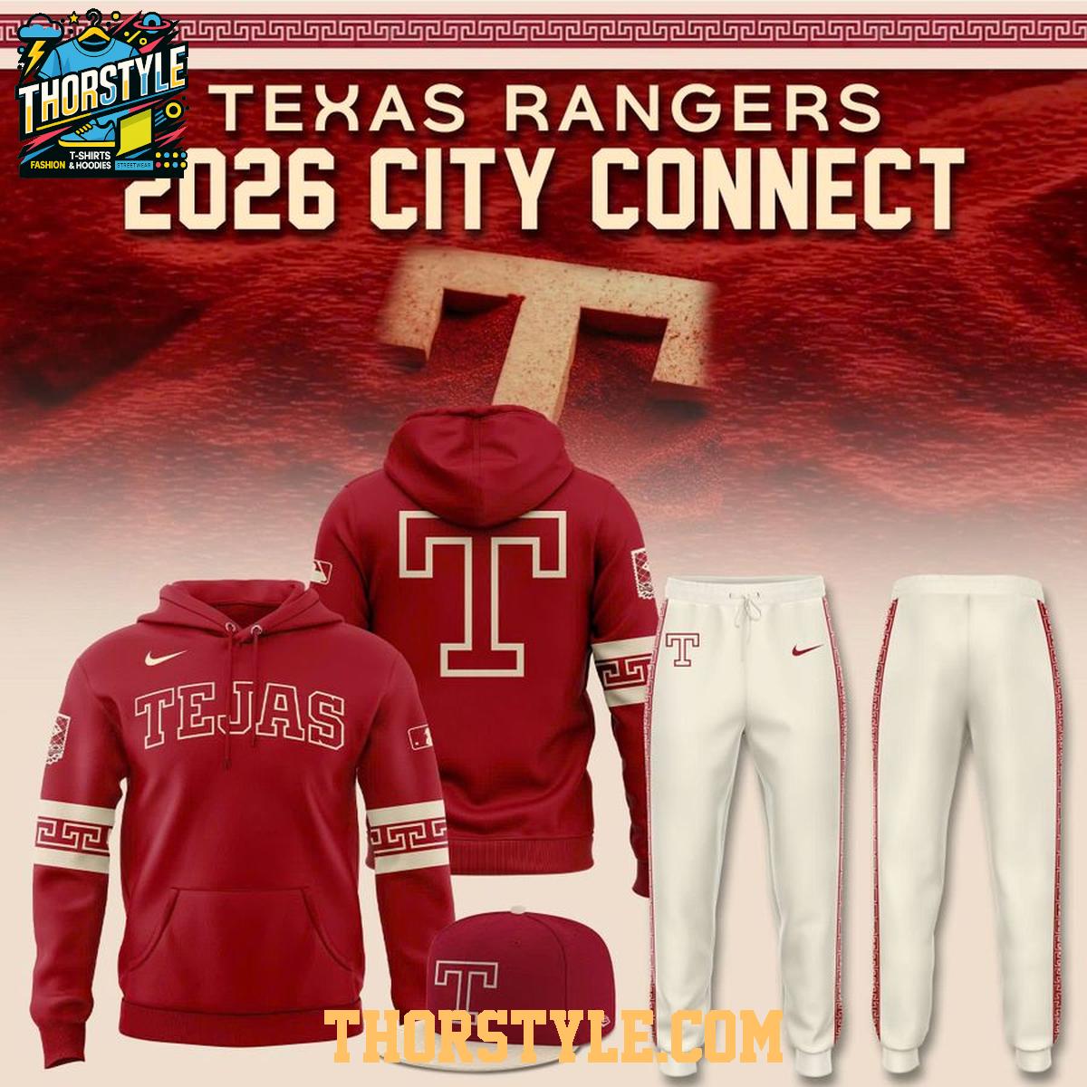 Texas Rangers 2026 City Connect All Red Tejas Night Hoodie T-Shirt