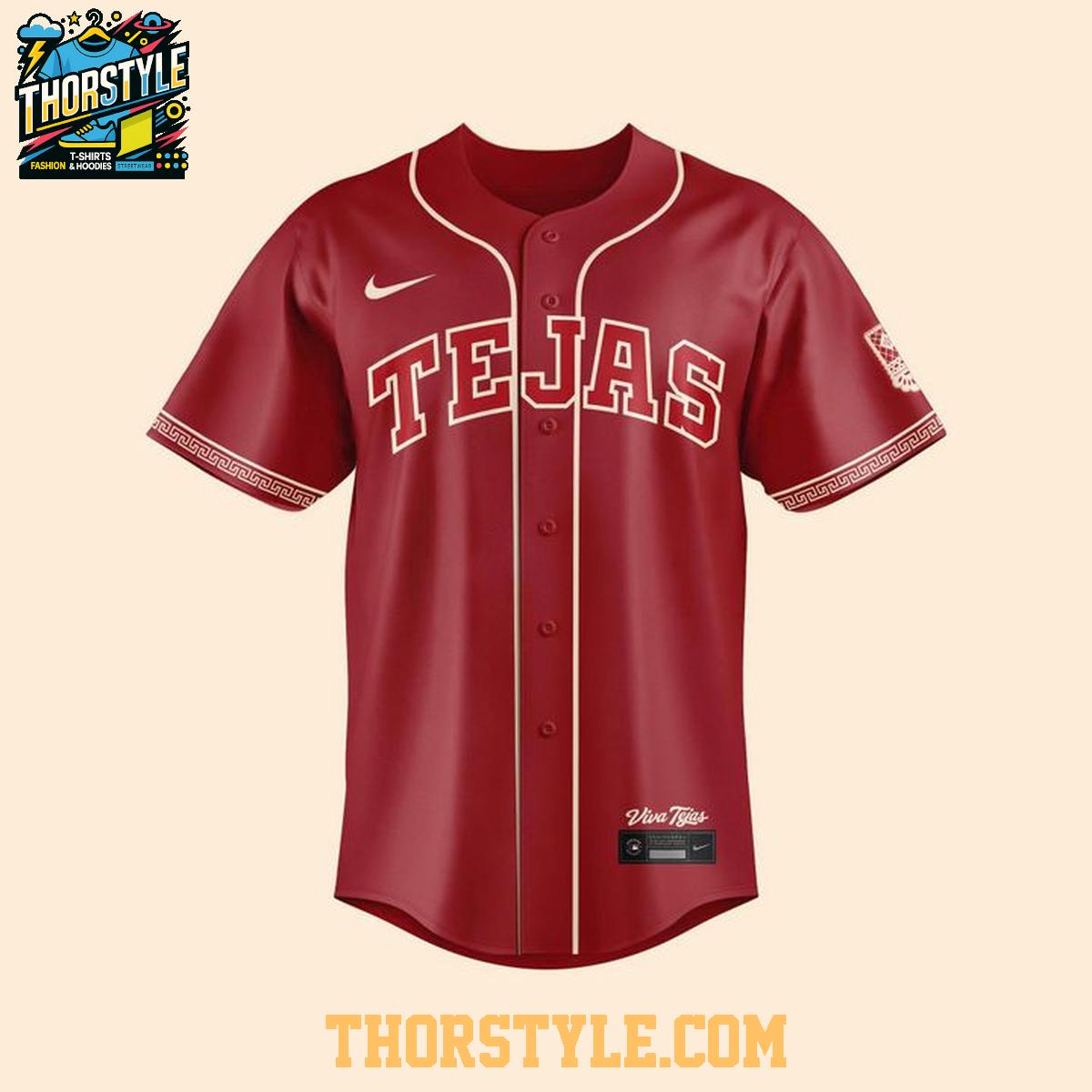 This special edition jersey features a striking design that reflects the spirit of Texas and the vibrant energy of the Rangers fanbase. The word "Tejas" emblazoned across the chest pays homage to the Lone Star State, and the intricate detailing on the sleeves adds a touch of sophistication to the classic baseball jersey silhouette. The fit is designed for comfort and movement, whether you're cheering from the stands or playing a pickup game with friends.