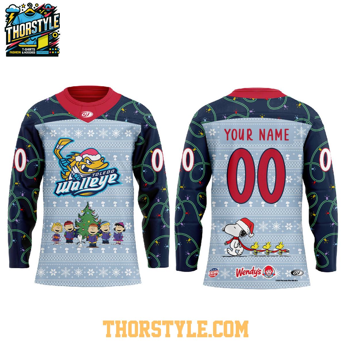 Toledo Walleye Wendy's Peanuts Charlie Brown X-mas Hockey Jersey,