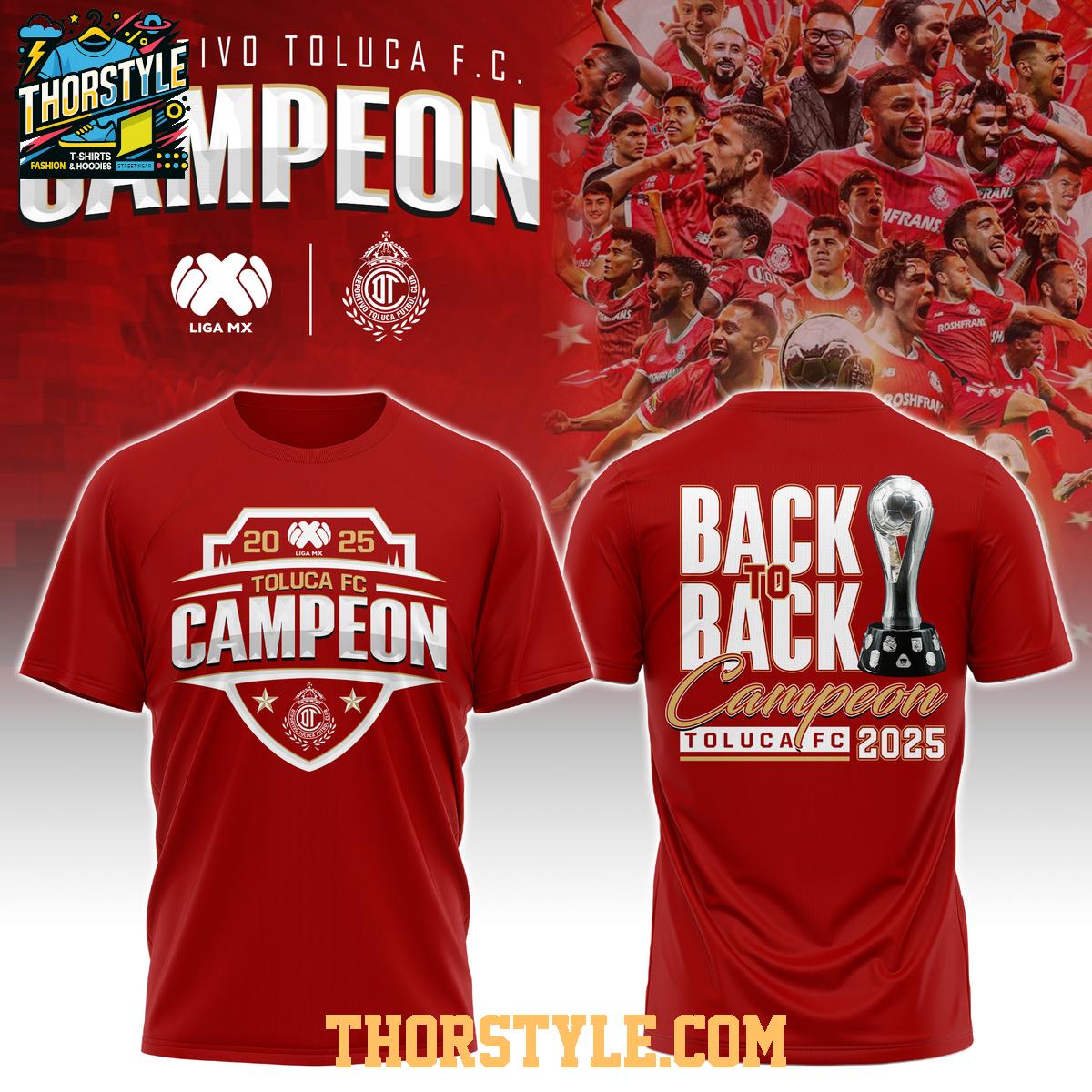 • Toluca FC Campeones Liga MX Champions 2025 Back To Back Hoodie T-Shirt