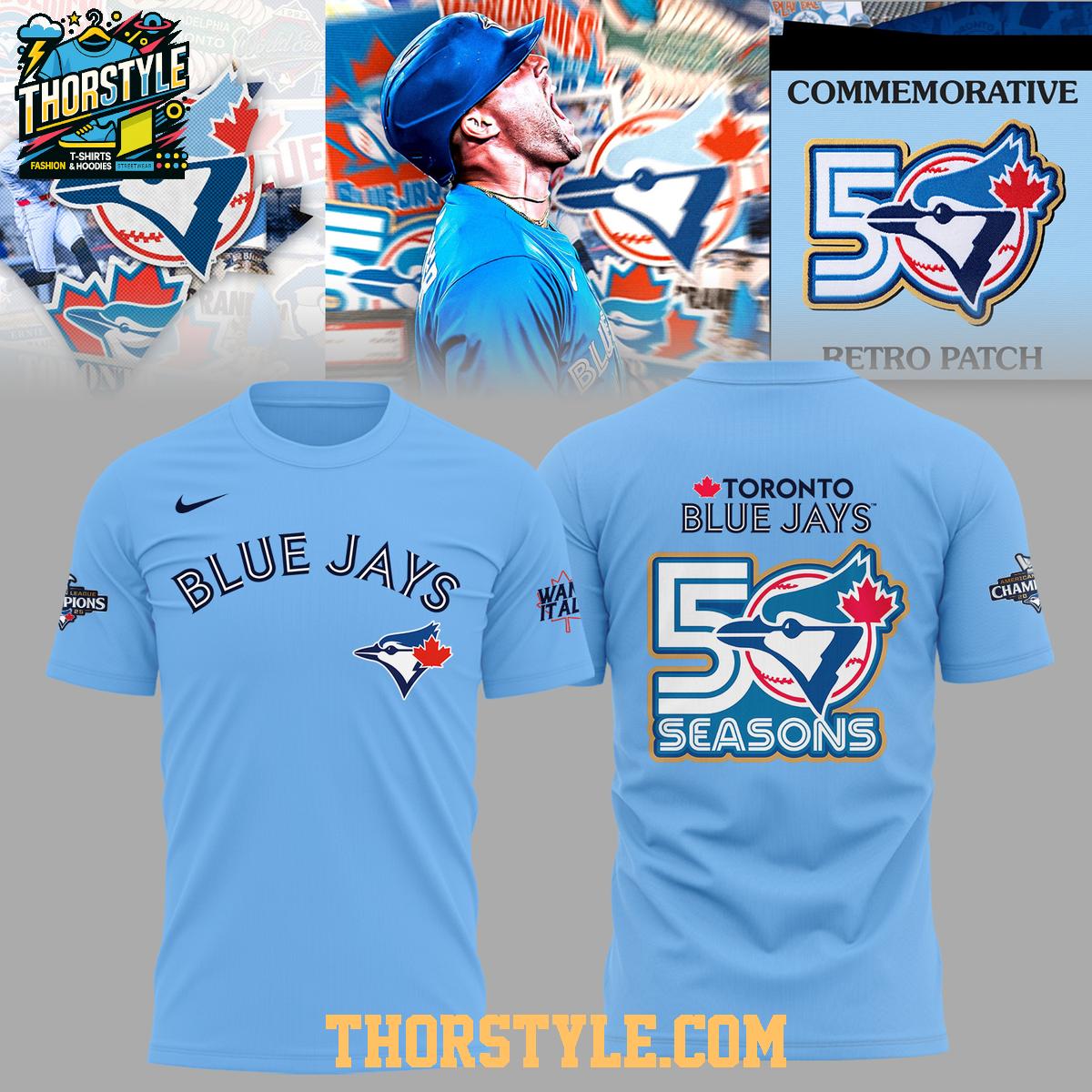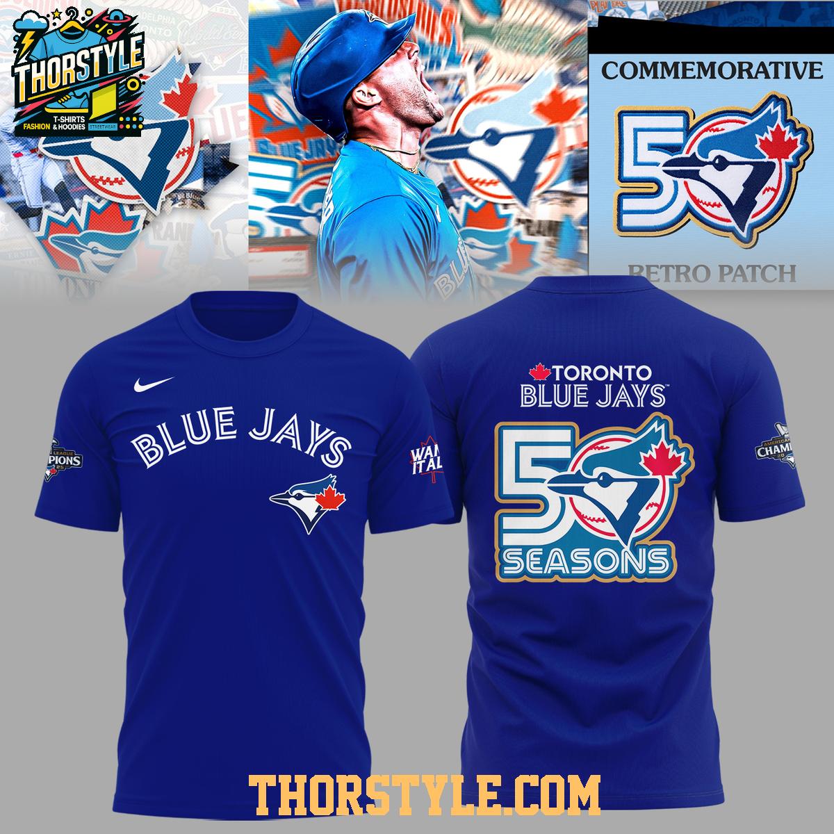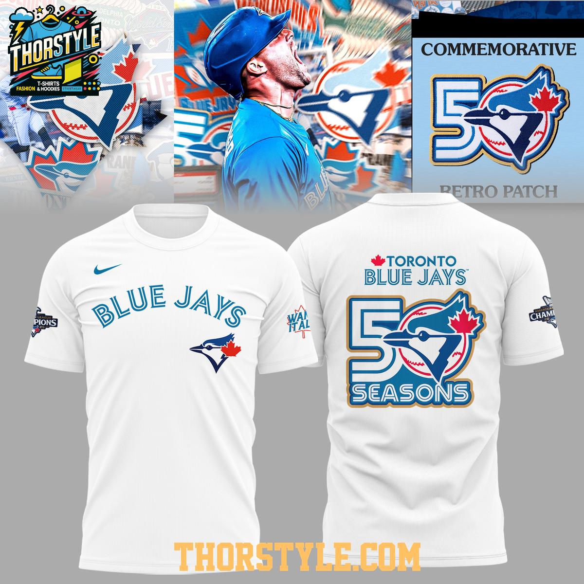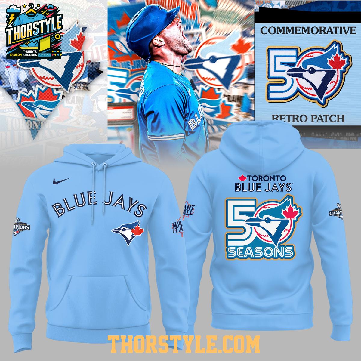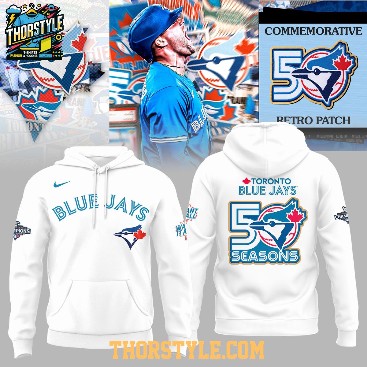 • Toronto Blue Jays 2026 Commemorative Retro 50 Seasons Hoodie T-Shirt