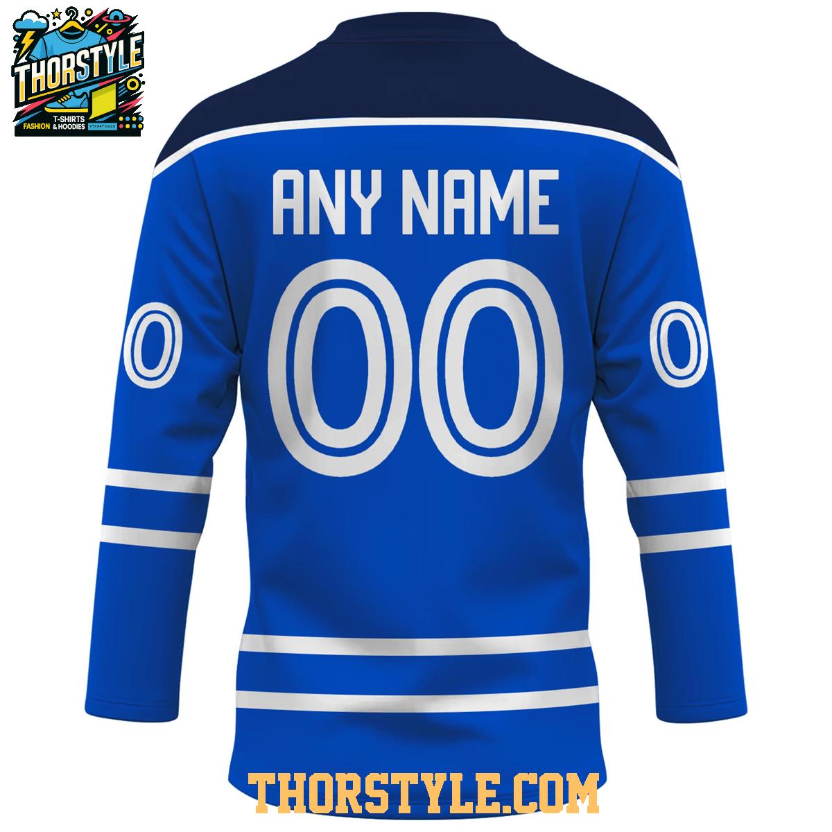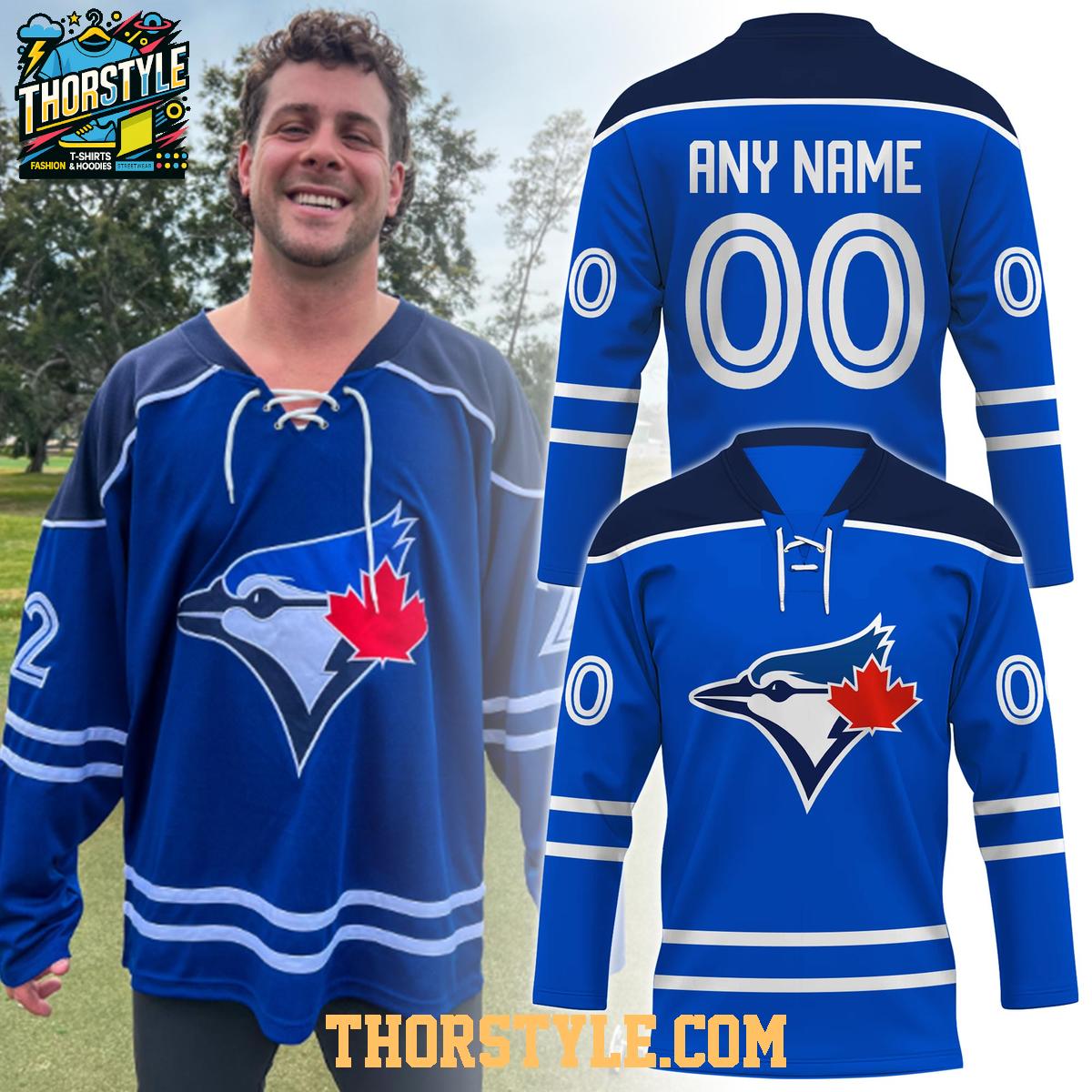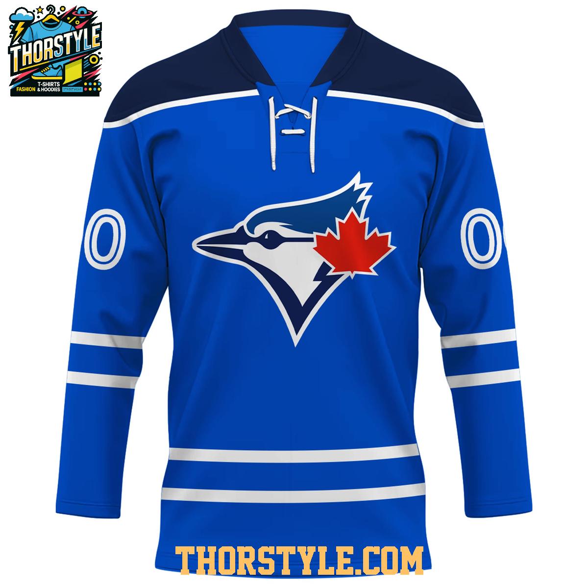 Show your passion for hockey and baseball crossover style with the Toronto Blue Jays 2026 Ernie Clement All Blue Personalized Hockey Jersey. This unique design celebrates the energy of the Toronto Blue Jays while honoring standout player Ernie Clement in a bold hockey-inspired format. Featuring a striking all-blue color scheme, the jersey blends Blue Jays branding with a modern athletic aesthetic, creating a fresh and eye-catching look. The front highlights team identity with clean, dynamic graphics, while the back allows for personalized name and number customization, making it a perfect choice for dedicated fans.
