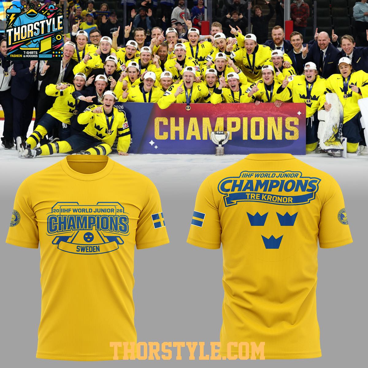 Tre Kronor 2026 Junior-VM Ishockey Champions Mastare Hoodie T-Shirt
