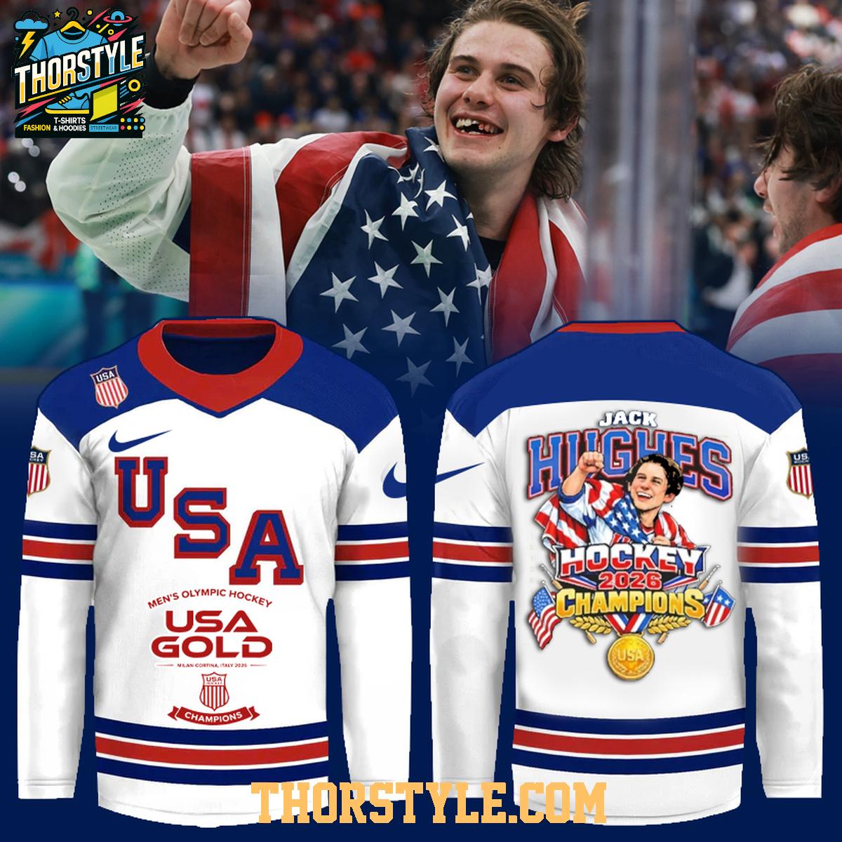 USA 2026 Winter Olympics Gold Medal Jack Hughes Hockey Jersey