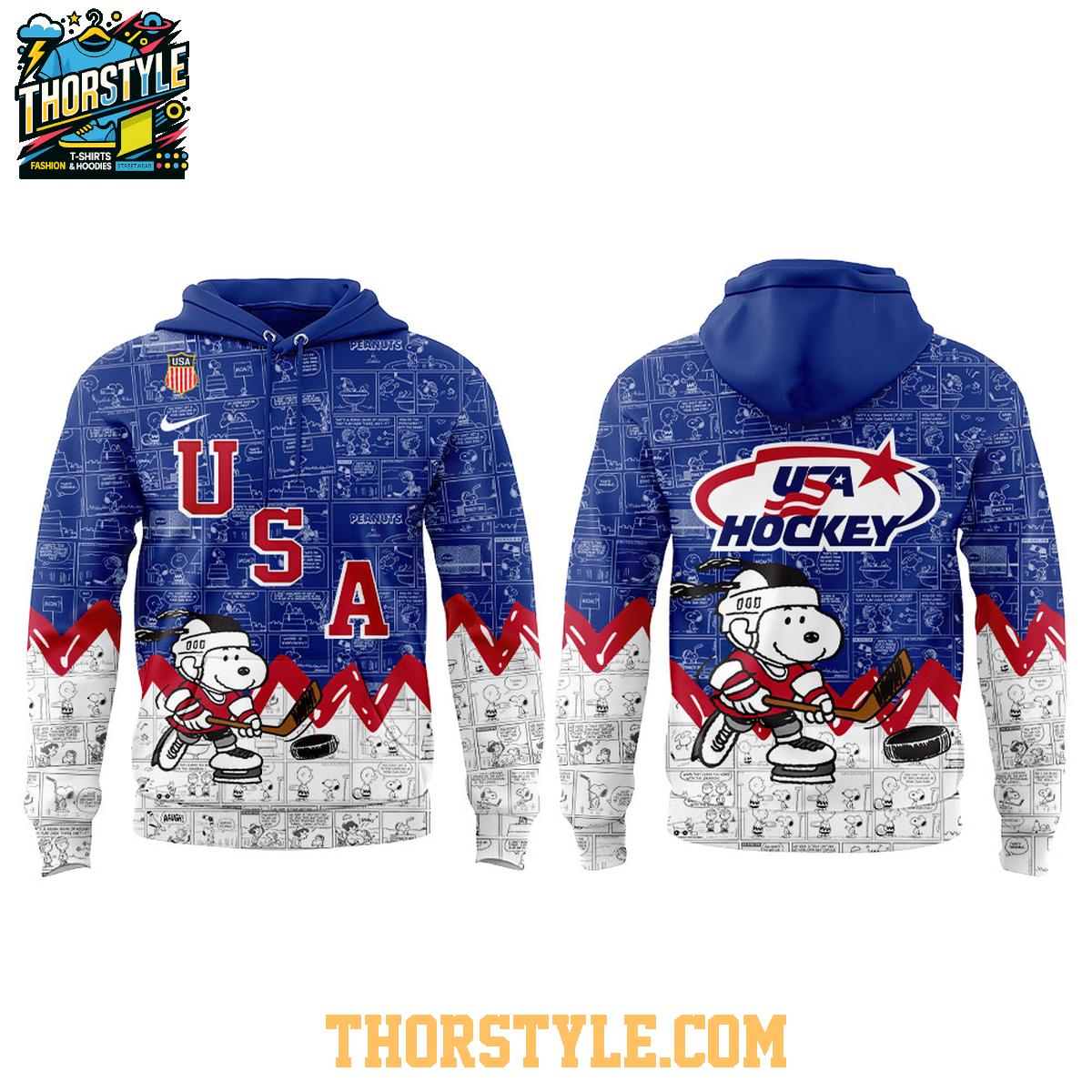 USA Hockey 2026 Olympics Champions Peanuts Night Hoodie T-Shirt