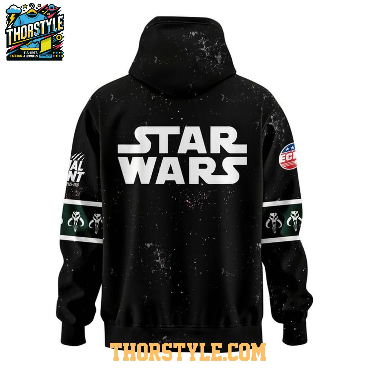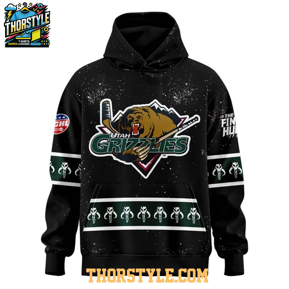 The all-dark aesthetic delivers a sleek and contemporary appearance, while the striking graphics, showcasing both the Utah Grizzlies logo and unmistakable Star Wars elements, make a bold statement. More than just apparel, this hoodie is a conversation starter, a testament to your diverse passions. Crafted for both comfort and enduring quality, it's perfectly suited for wearing at the rink, enjoying the game from the comfort of your home, or proudly displaying your fandom as you navigate your day.