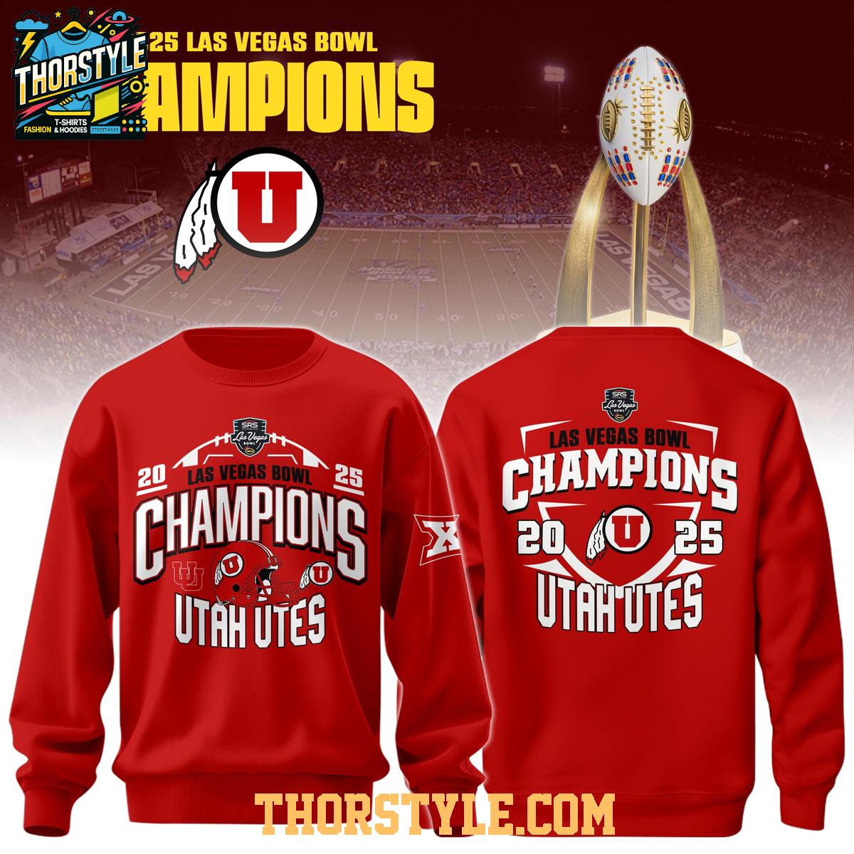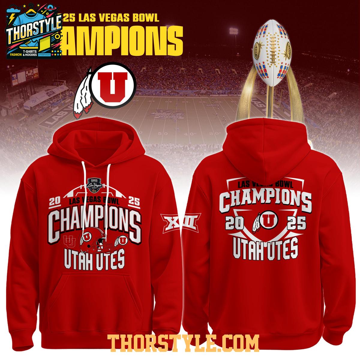 Utah Utes 2025 Las Vegas Bowl Champions Football Hoodie T-Shirt Red