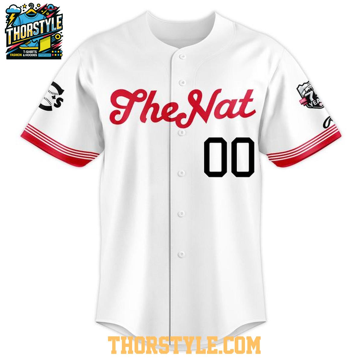 The jersey proudly displays the iconic "The Nat" logo across the chest, a nod to the team's enduring nickname and a symbol of local pride. What truly distinguishes this jersey is the option to personalize it with your own name and number on the back, transforming it into a one-of-a-kind collector's item. The meticulously embroidered 75th Anniversary patch further enhances its historical significance, marking this momentous occasion.