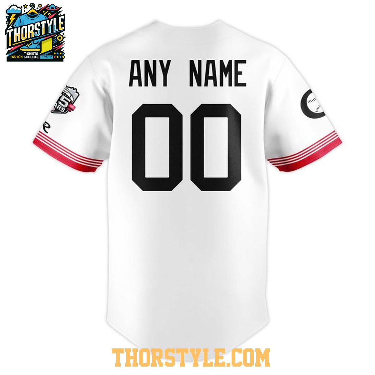 Wear this jersey with pride to baseball games, social events, or casual outings. Its versatile design allows for effortless styling; pair it with jeans or shorts for a relaxed look, or elevate your ensemble with chinos for a more refined appearance. With its durable stitching and high-quality fabric, spot cleaning is typically sufficient for minor stains, ensuring this commemorative jersey remains a cherished part of your wardrobe for years to come.