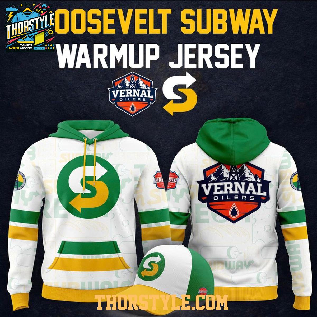 • Vernal Oilers 2026 Roosevelt Subway Warmup Game Hoodie T-Shirt