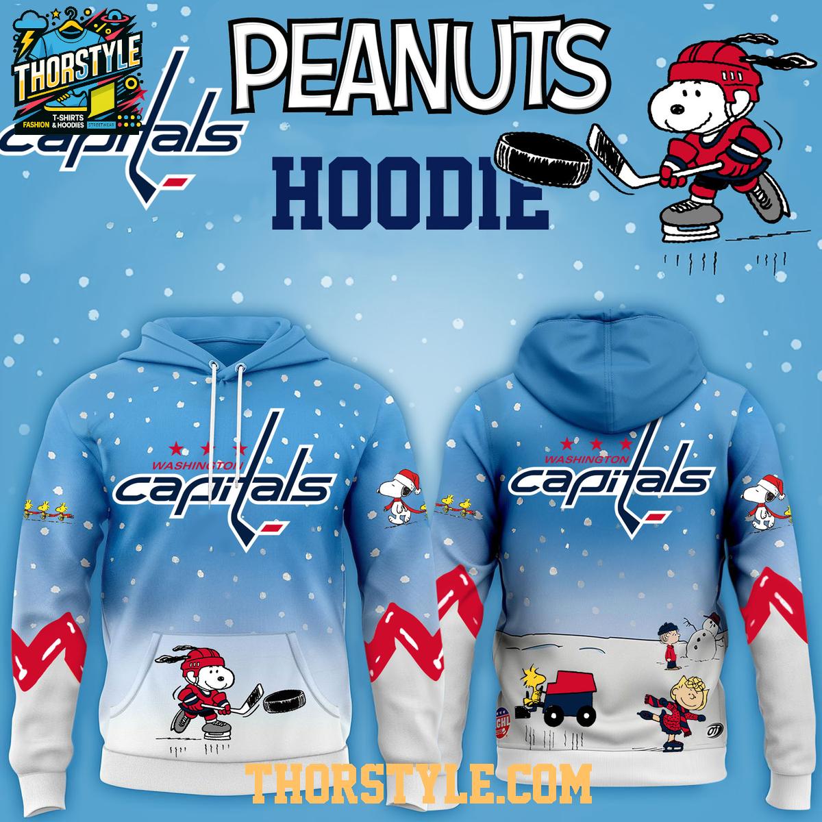 • Washington Capitals Peanuts Hockey Merry Snoopy X-Mas 2025 Hoodie T-Shirt