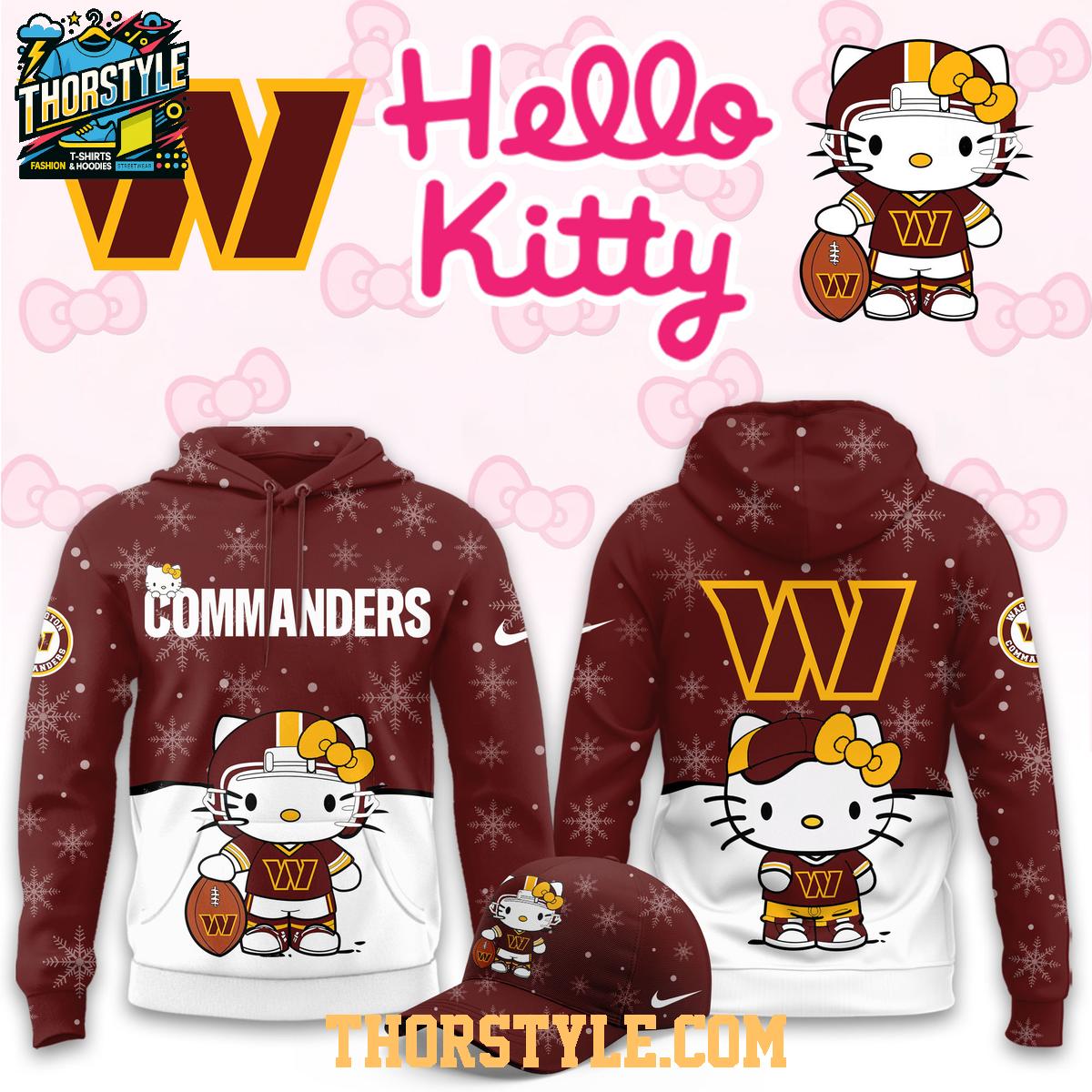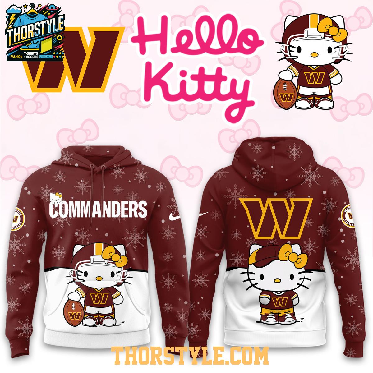 Get ready to celebrate the holidays with a unique blend of team spirit and adorable charm with the Washington Commanders Hello Kitty Merry Christmas 2025 Holiday Hoodie T-Shirt. This special edition apparel combines the iconic imagery of the Washington Commanders with the undeniable cuteness of Hello Kitty, creating a festive and fun way to show your support.